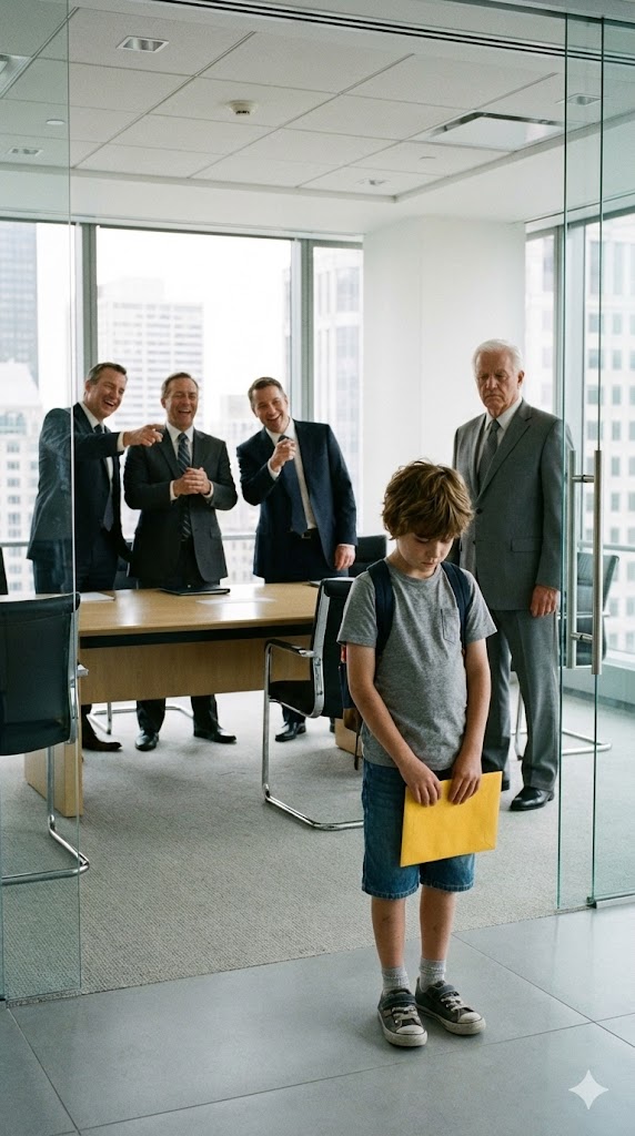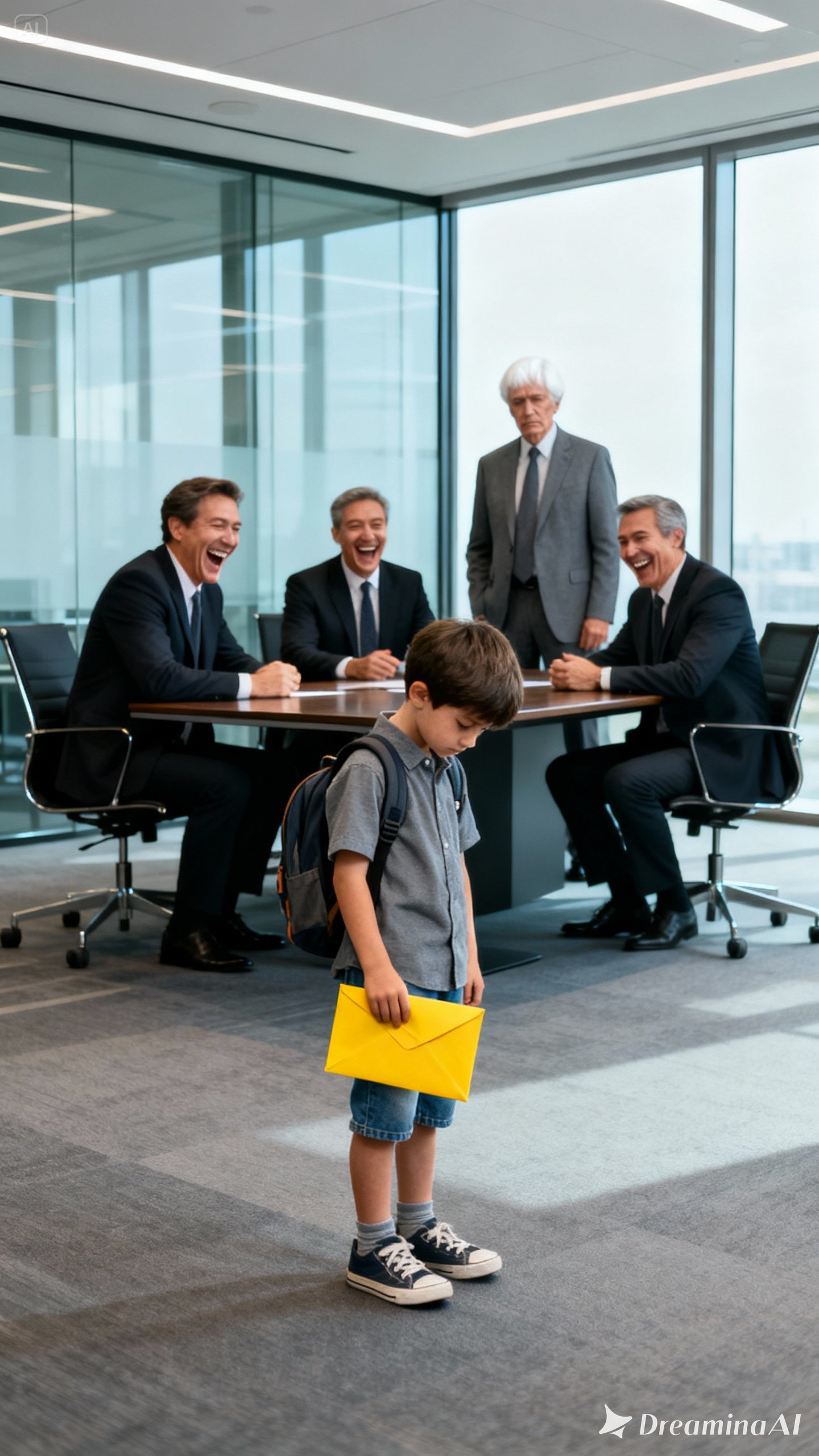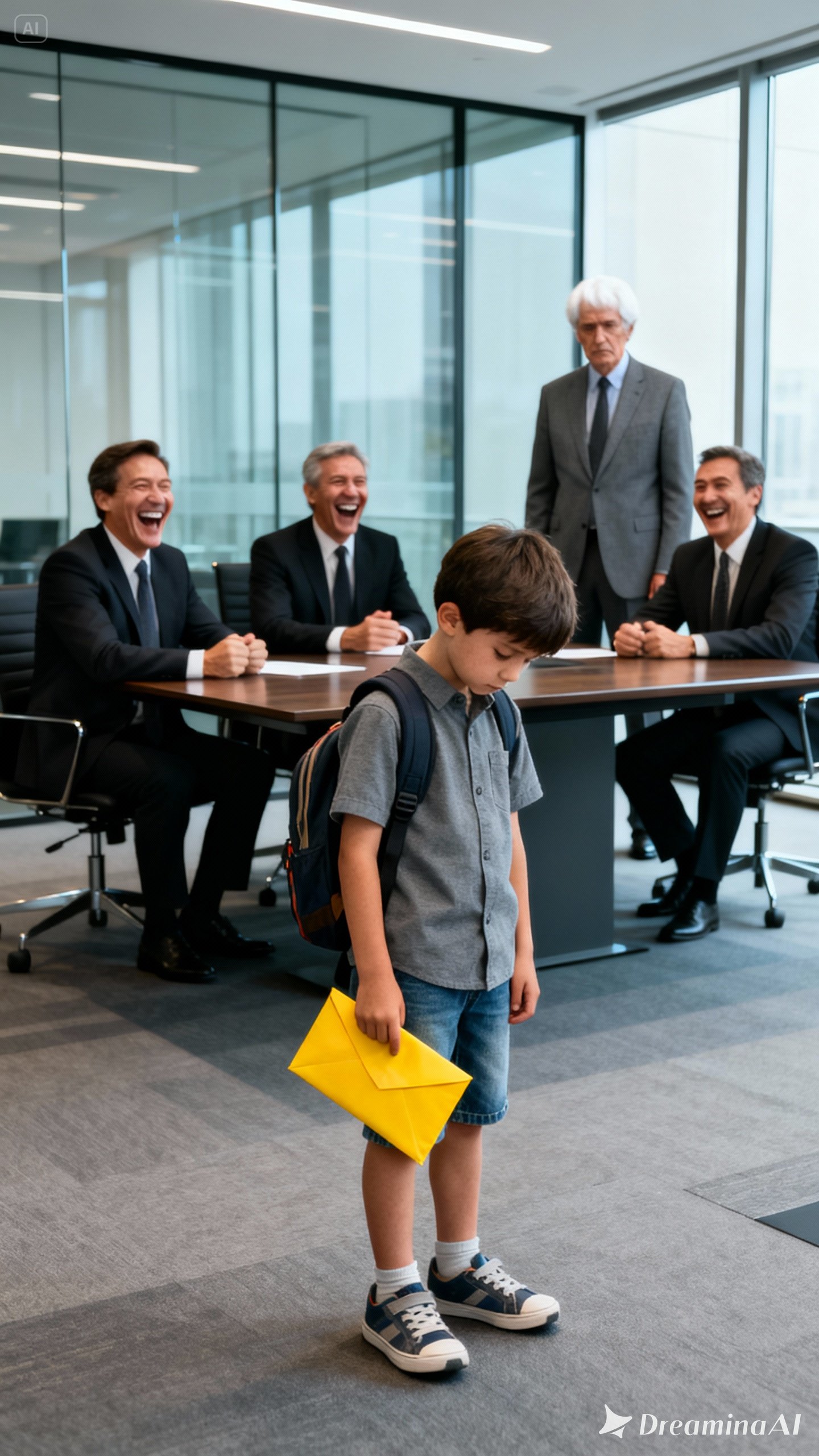 Lucas Ferreira clutched a yellow envelope tightly to his chest as he pushed open the glass doors of the building. His palms were slick, not from the weight of the envelope, but from the sheer scale of the place. Everything was marble, glass, and tailored suits. Around him, adults hurried by, completely oblivious to his presence. A ten-year-old boy, dressed in worn sneakers and a torn backpack, seemed invisible here.