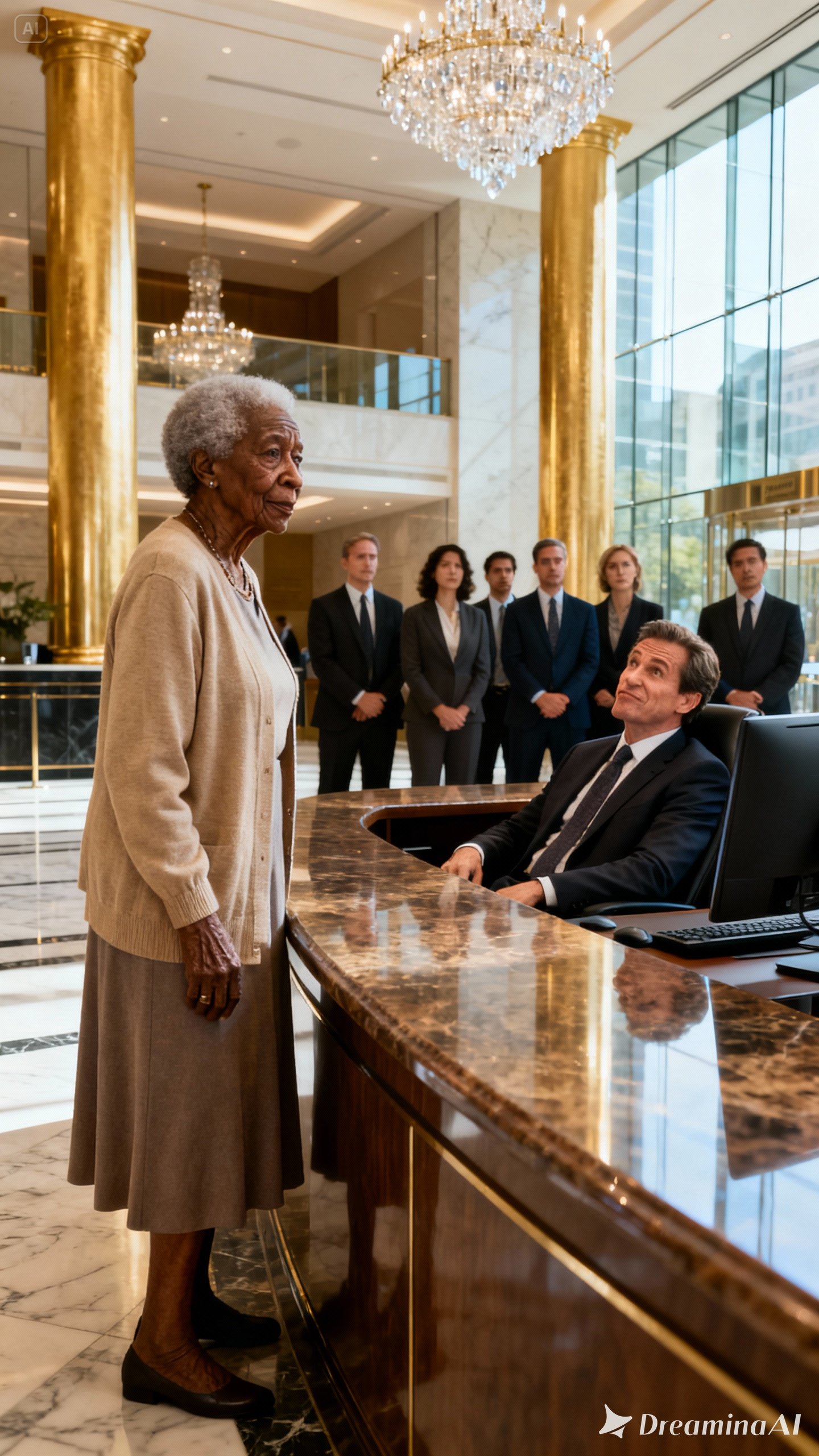 She walked out slowly, her cane tapping softly against the marble floor, leaving the bank wrapped in stunned silence.