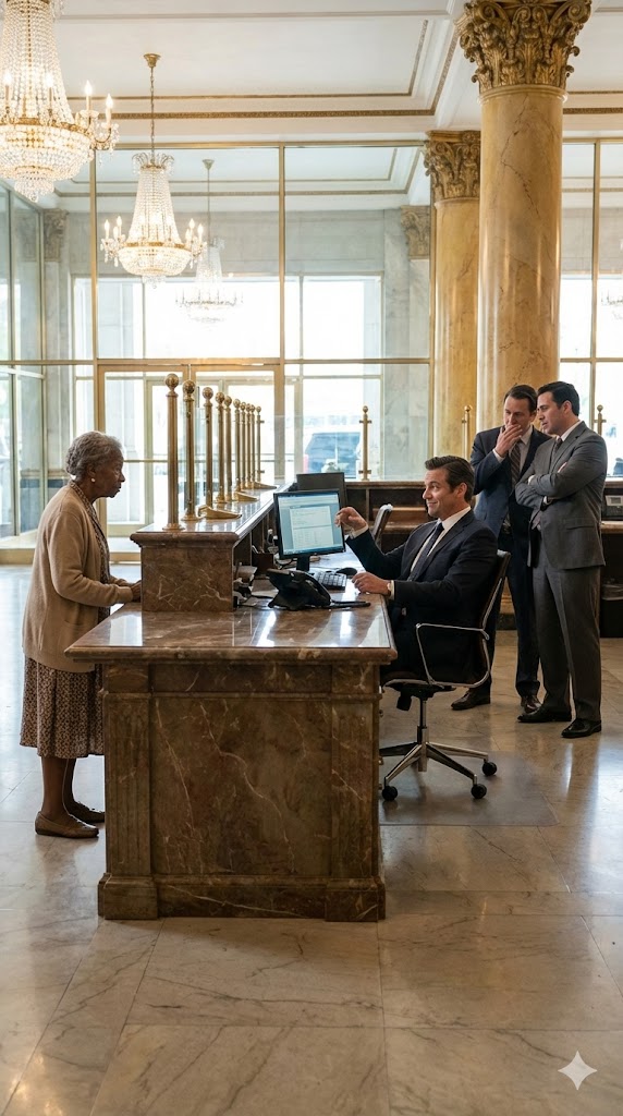 An elderly woman in worn clothes wanting to “just check her balance”? He assumed she had a few hundred dollars at most—maybe Social Security. In his mind, people like her didn’t belong in a bank like this. They belonged at a corner store cashing checks.