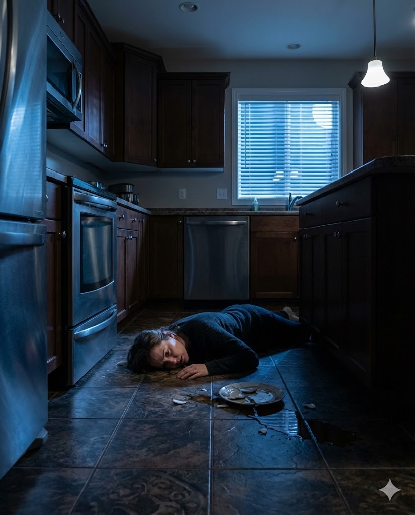 My heart slammed against my chest as I remained perfectly still on the icy tile. Fragments of a ceramic plate were strewn around me, tangled with pieces of salmon Ethan had made for dinner. Every instinct urged me to move, to gasp, to open my eyes and confront the man I’d loved for three years. But I didn’t. I couldn’t. Not yet.