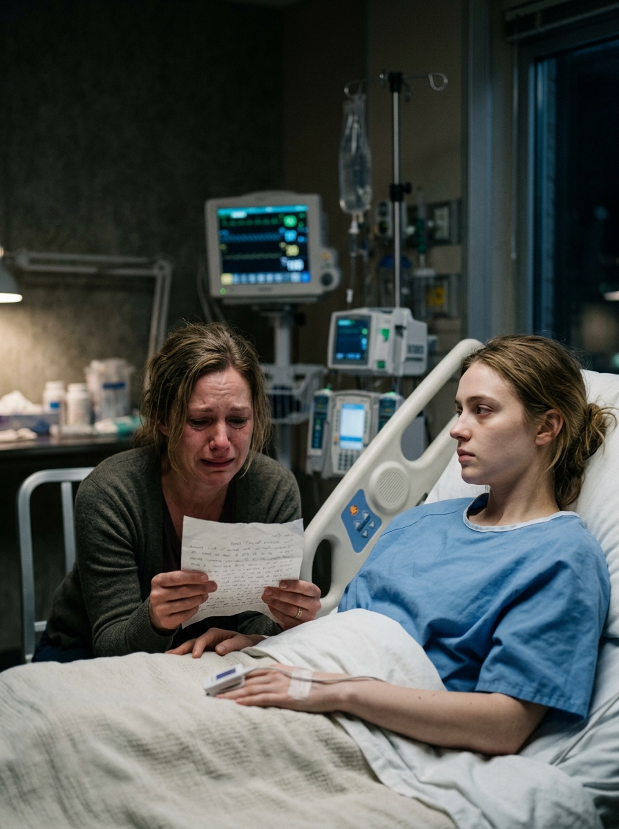 Later, when everything had settled, I sat beside her hospital bed. She looked pale, exhausted—but calm.