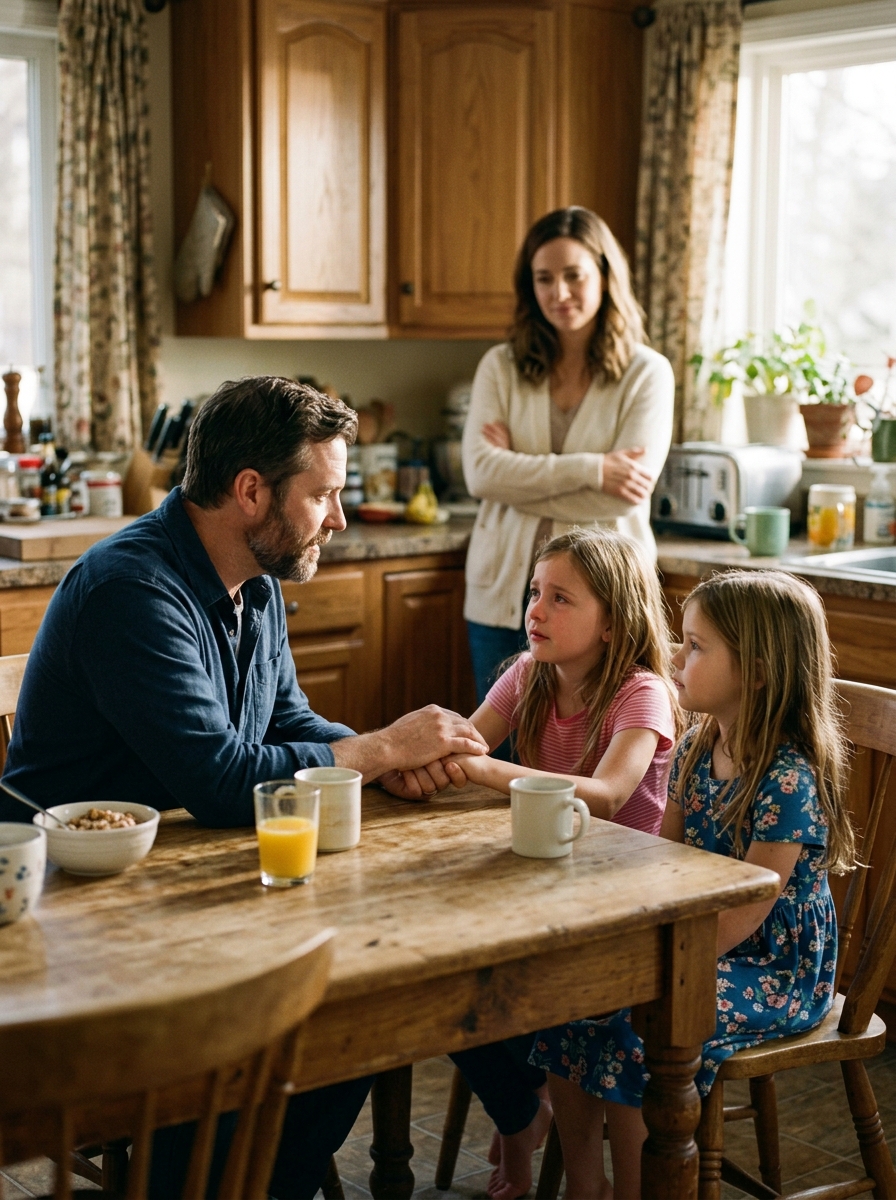 The next morning, he sat the girls down at the kitchen table.