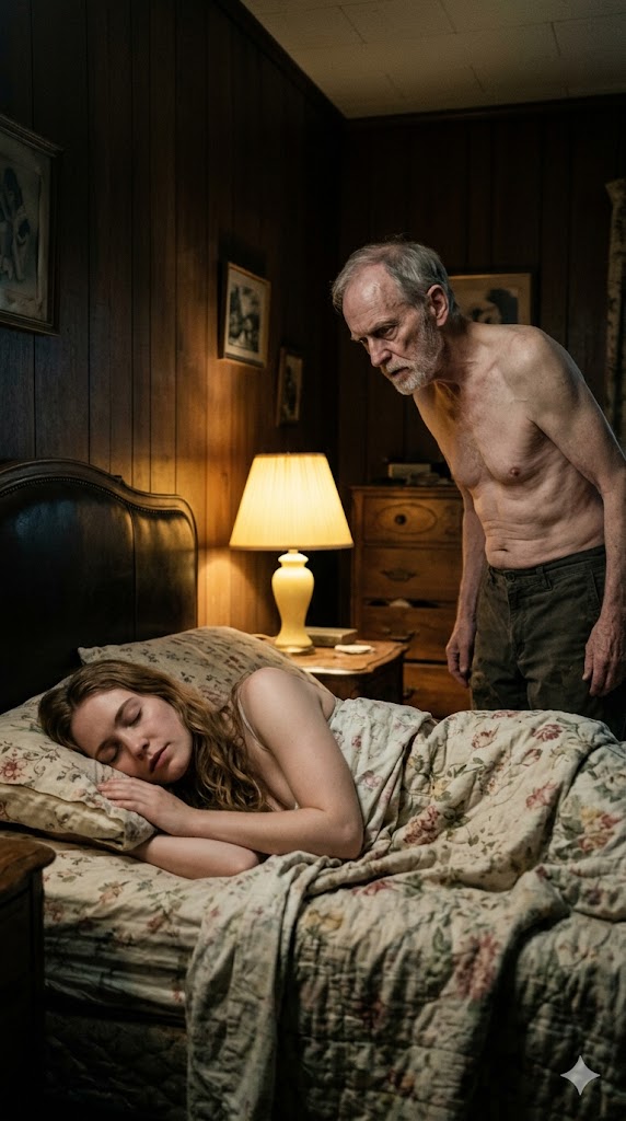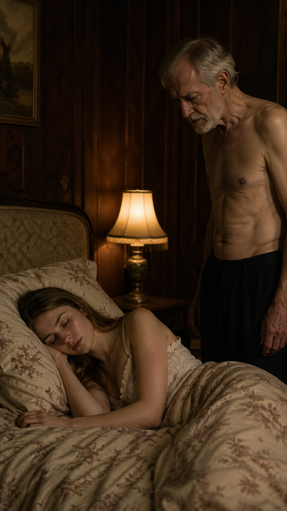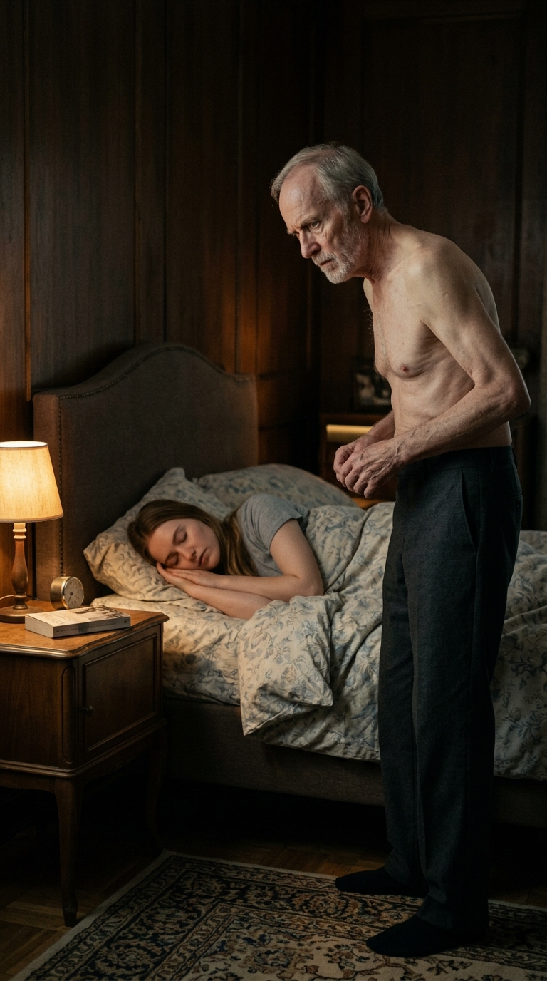 At night, the bedroom door opened quietly. I woke up from the sound. He stood in the doorway, looking at me, holding a small pill in his hand.