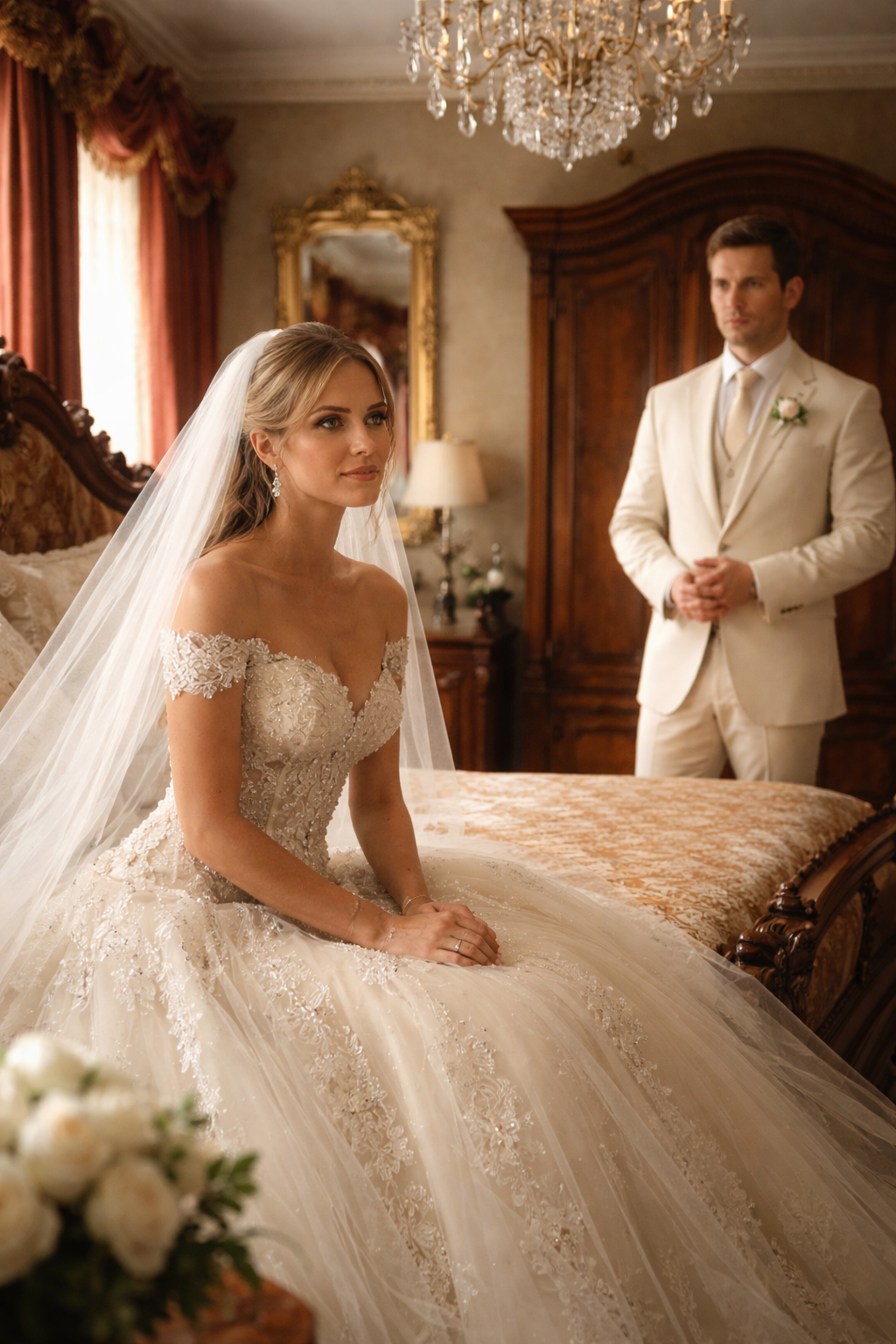 The room suddenly felt smaller. The gentle glow from the wedding lights downstairs seemed too warm for what was unfolding here.