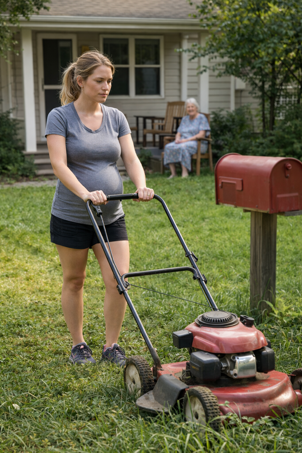 The rest of the yard took forever. My body screamed, but finishing was the only thing that made sense. When I finally stopped, I set the mower down, wiped my hands on my shorts, and tried not to notice my blurred vision.