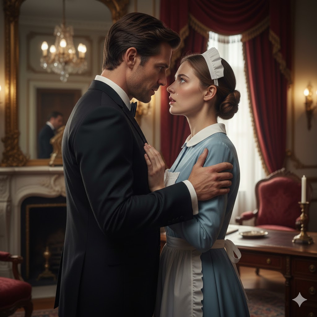 Silvia entered, pushing the cart, eyes lowered out of courtesy. She froze when she saw the man on the bed. Manuel Fonseca looked like a castaway in a tuxedo—ashen, drenched in sweat, staring at the Persian rug as if it might swallow him whole.