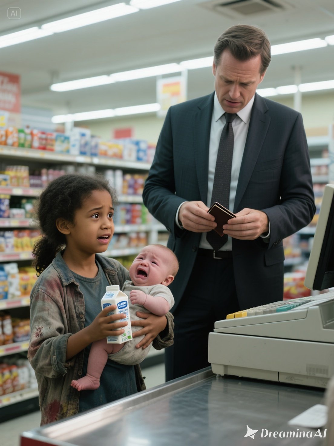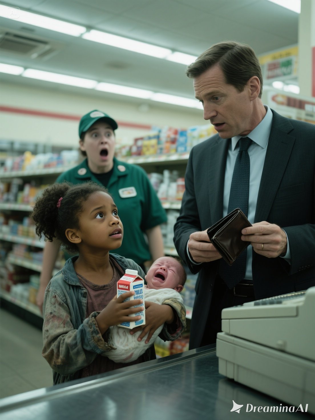 To everyone’s shock, Richard stepped forward and placed a hundred-dollar bill on the counter. “Not just the milk,” he said. “Get her whatever she needs — formula, diapers, food. Ring it all up.”