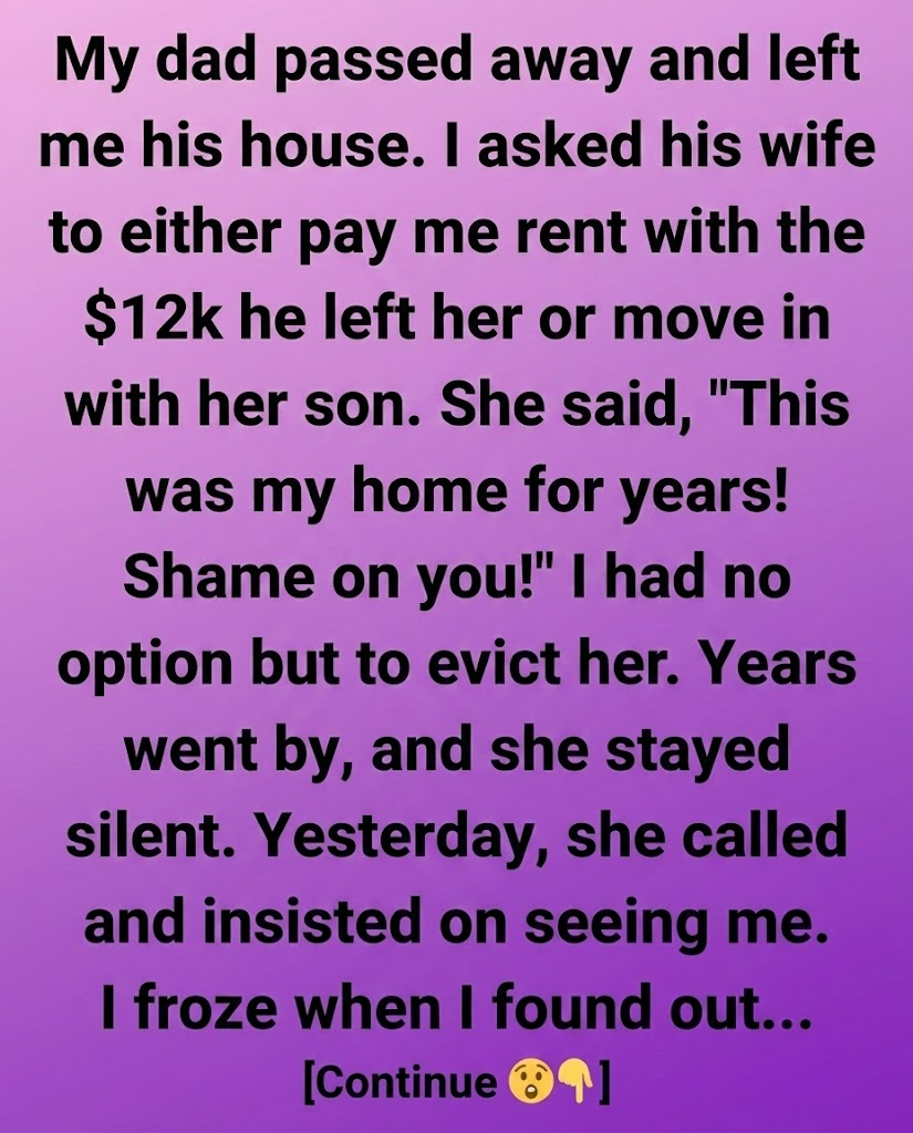 She explained that he had used the remainder of his savings to buy the apartment for her, ensuring she’d have a safe place to live if she ever had to leave the house. She also revealed that she had signed a deal saying that the apartment would go to me once she passed, but only if she stayed in the house with my dad. If she was forced to leave, she had the right to give the apartment to anyone—now, she’s leaving it to her son.