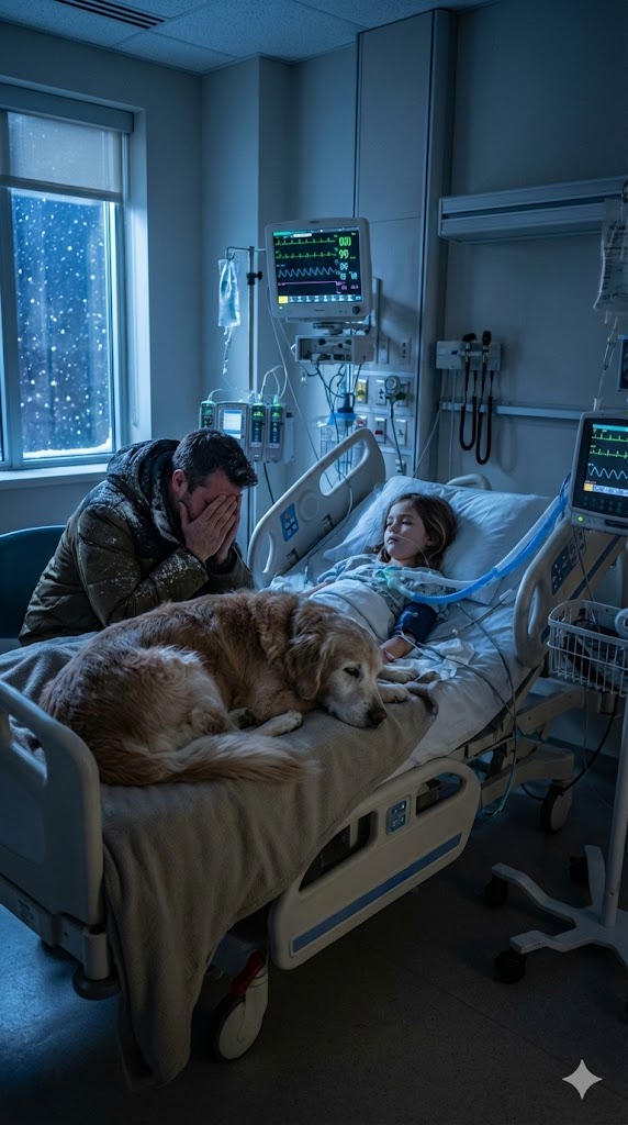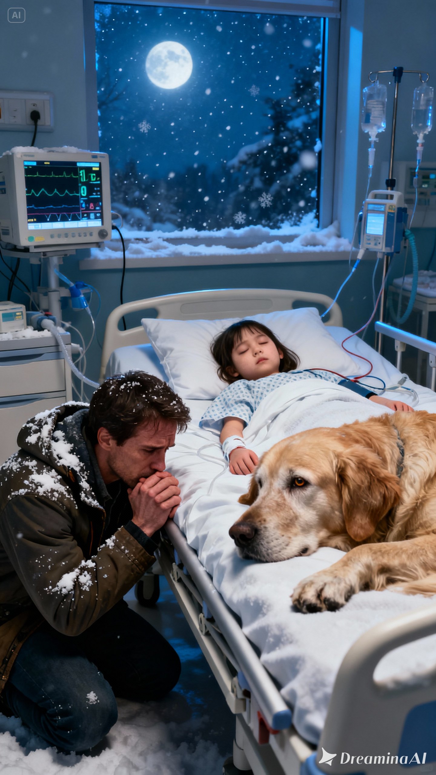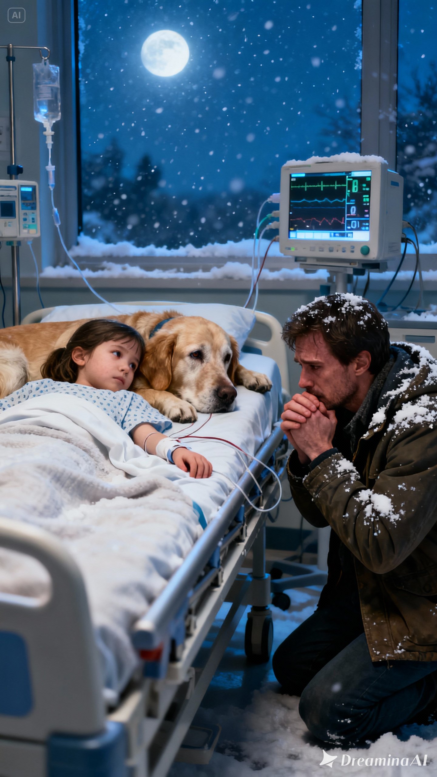 The storm raged outside against the glass, a chaotic symphony of wind and ice, but in that room, there was a sudden, holy stillness. The air pressure seemed to drop. The world narrowed down to just the three of us: a father, a dying girl, and a dog.