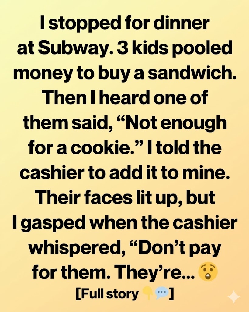 I stopped by Subway that night because I was exhausted and hungry and didn’t feel like making dinner. Nothing special about it—just bright fluorescent lights, the smell of fresh bread, and that familiar end-of-day weight sitting on my shoulders. I stood in line scrolling through my phone, half paying attention, half already imagining getting home.