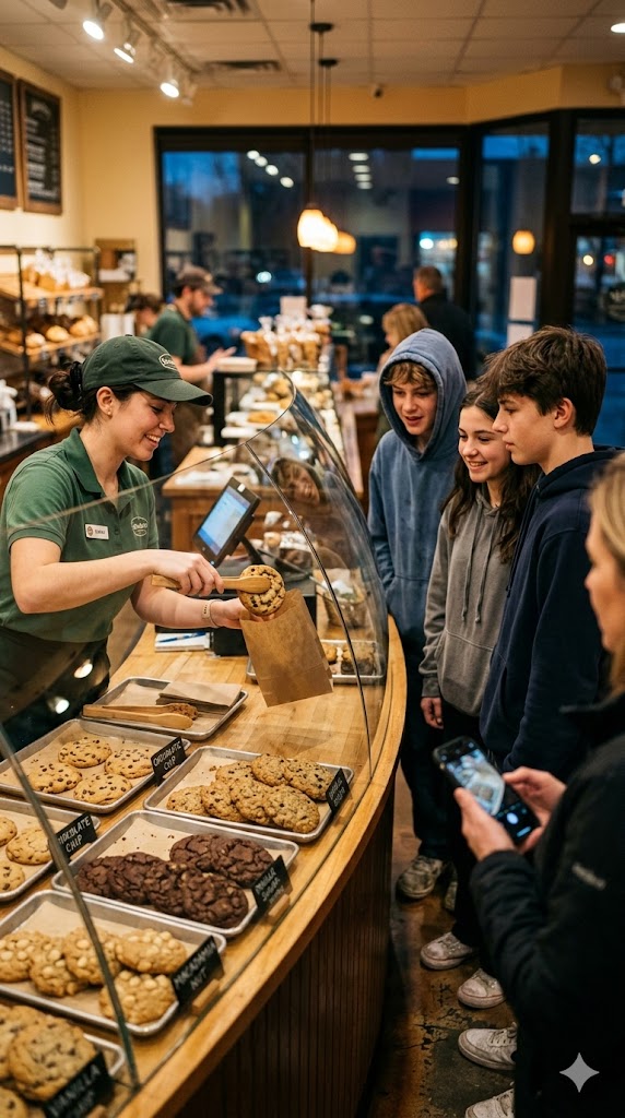 I paid for my meal. The cashier pushed my bag across the counter and slipped the cookie inside anyway, giving a small wink like we shared a secret.