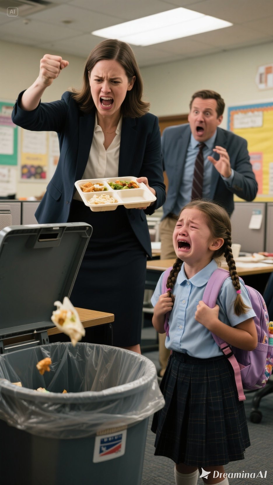 “Good morning,” I began, fingers resting lightly on the podium. “Yesterday, a video circulated of a staff member at Maple Ridge Academy discarding a young student’s lunch and telling her she did not deserve to eat. I was the father in that video.”
