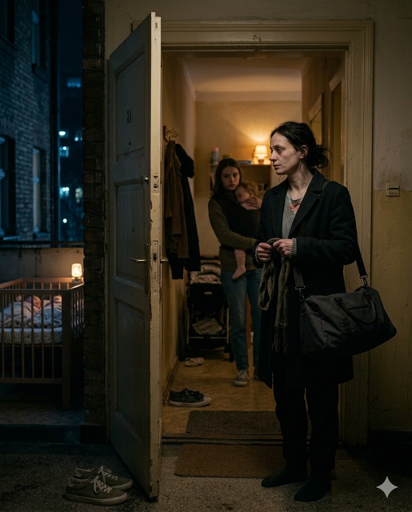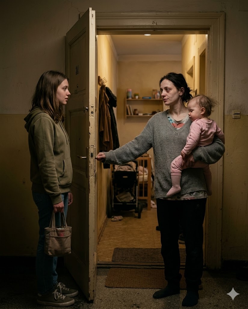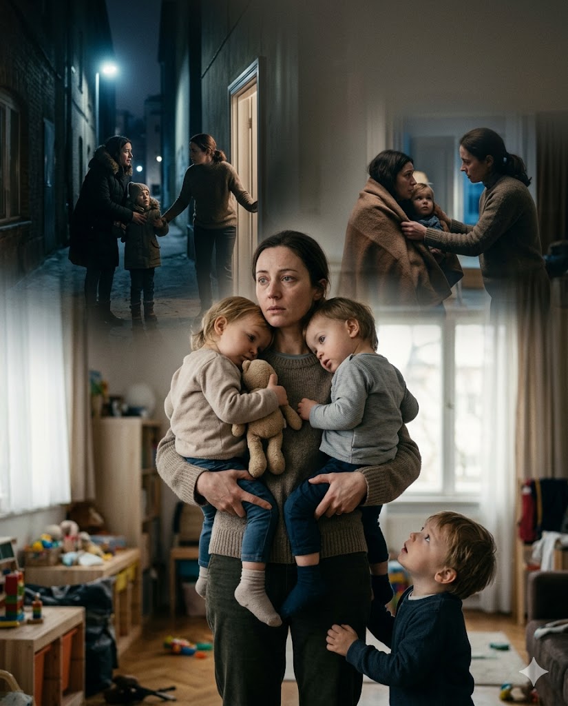 She answered the door with one baby on her hip and the other crying somewhere behind her. Her hair was loosely tied, her eyes tired but gentle. The apartment was small, quiet… almost too quiet for a home with twins.
