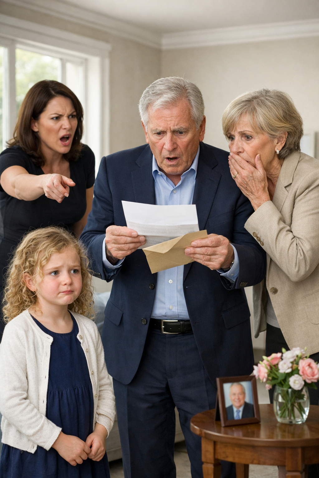 I called my parents to tell them my husband had died, but they were too busy celebrating my sister’s birthday. Days later, they arrived demanding half his inheritance—until my 8-year-old daughter placed an envelope in their hands that made them shake.
