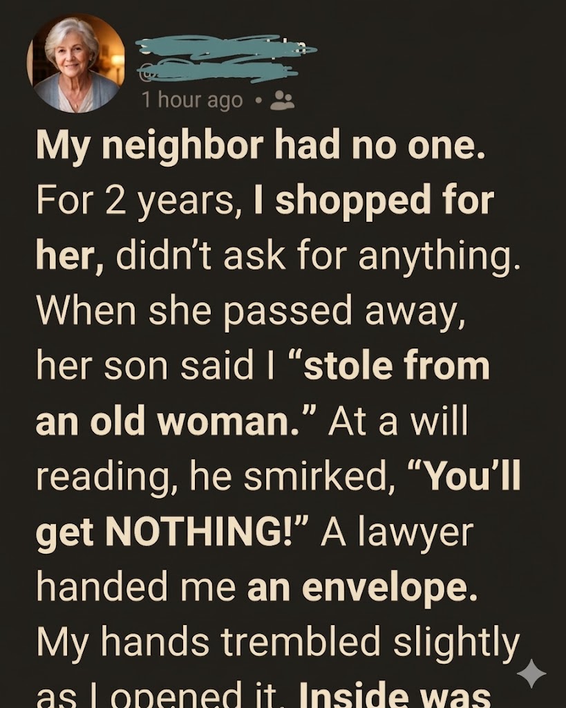 Over the next two years, helping Mrs. Whitmore became part of my routine. At first, it was small things—bringing groceries, picking up prescriptions, fixing a flickering light. She always offered to pay, and I always declined gently.