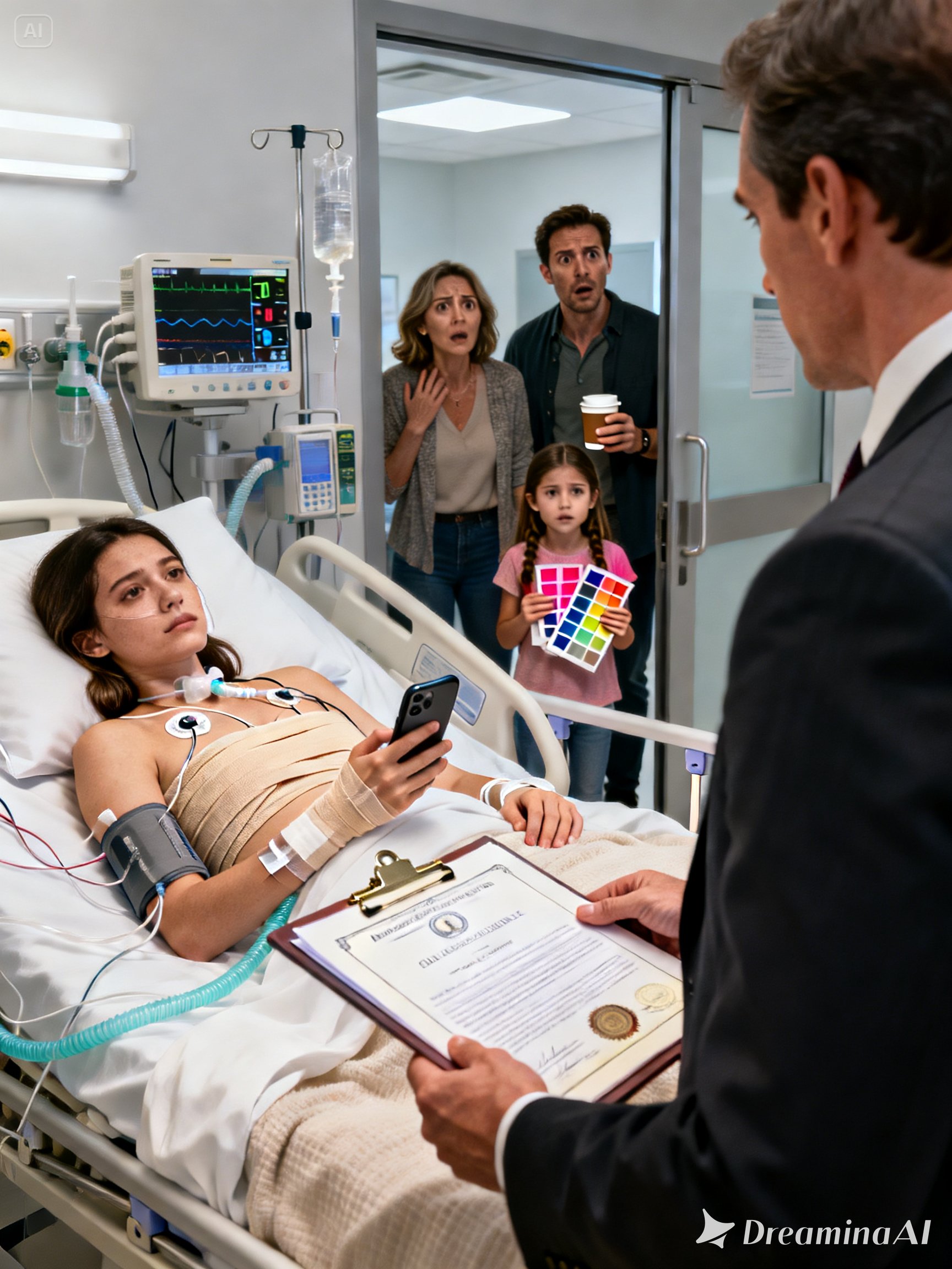 Hailey takes a step closer, her face twisting with outrage. “You can’t do this,” she says. “It’s not fair.” The word fair coming from her is almost comedic, but I don’t give her that reaction. “Fair,” I repeat, my voice soft. “Fair would have been answering the phone.” Fair would have been showing up when the doctors were discussing possible surgery. Fair would have been my mother holding my hand instead of holding paint samples. My father opens his mouth and closes it, because for once the usual scripts don’t work. My mother looks around the ICU room like she expects someone to take her side. Carla is at the doorway, arms crossed, her expression neutral but unimpressed. Alyssa stands near the bed with her jaw tight, and she doesn’t flinch when my mother’s eyes search for sympathy. My parents realize suddenly that the audience isn’t theirs anymore. They aren’t the center of this story, and that terrifies them.