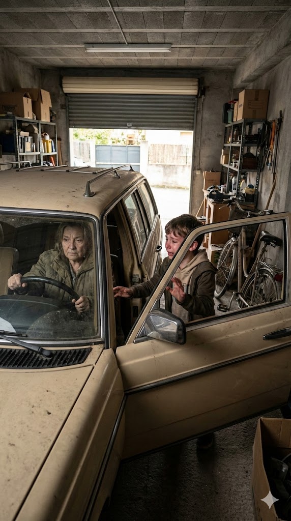 She had just opened the car door when the garage door slammed open. Her grandson, Lucas, came running in, pale, breathless.