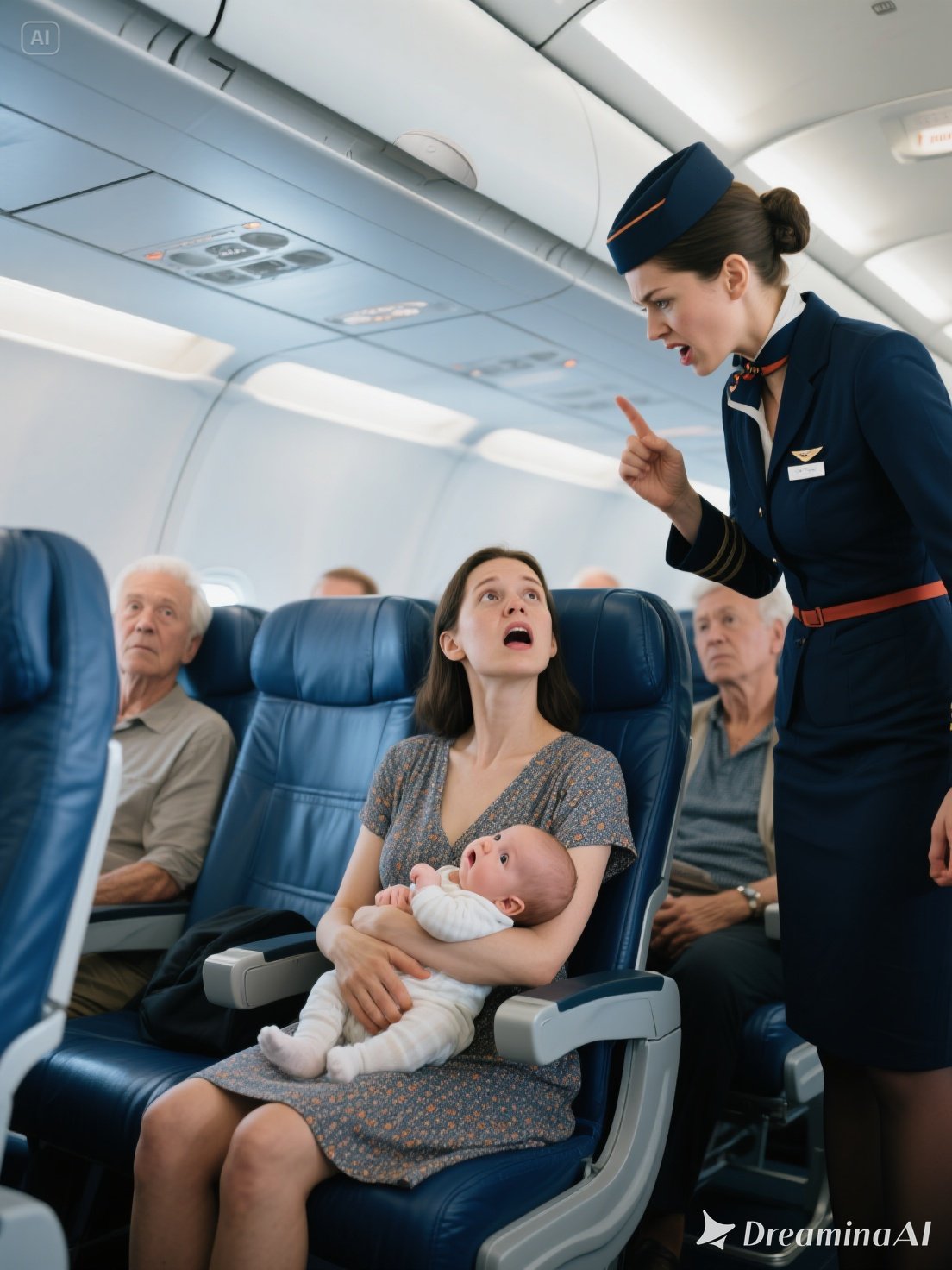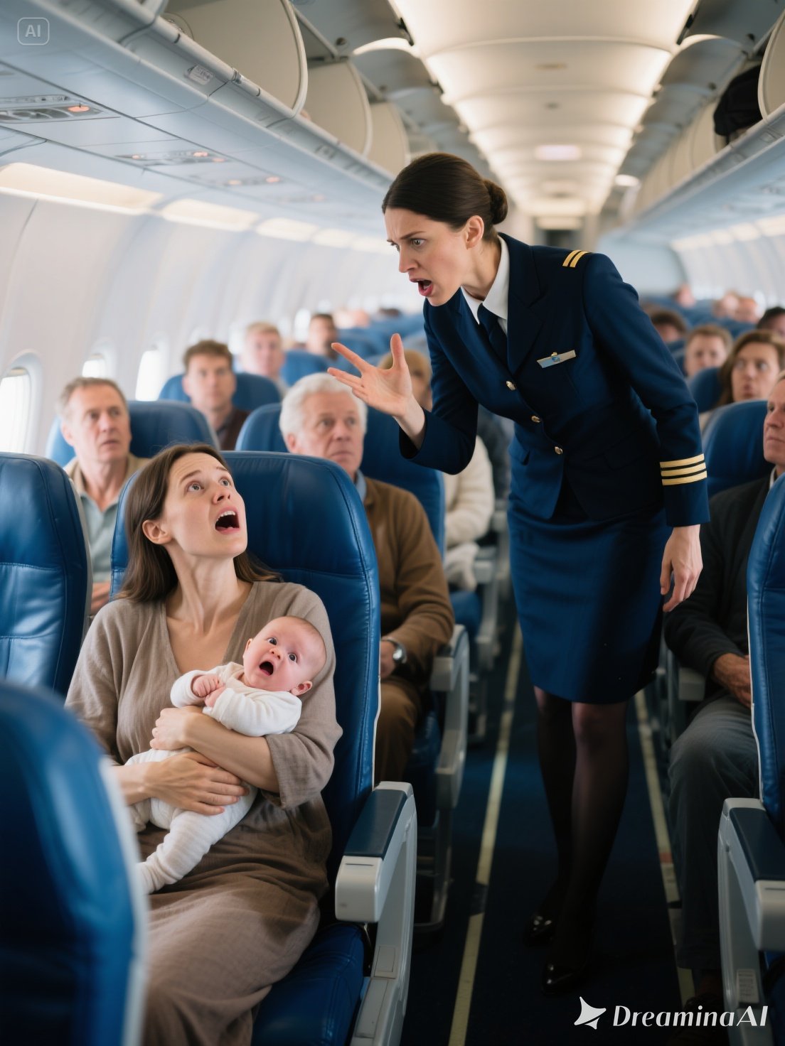 “Ma’am!” she barked, her sharp tone startling those nearby. She stormed down the aisle, her expression twisted with anger. “Your baby is too noisy! You’re disrupting the passengers and the crew!”