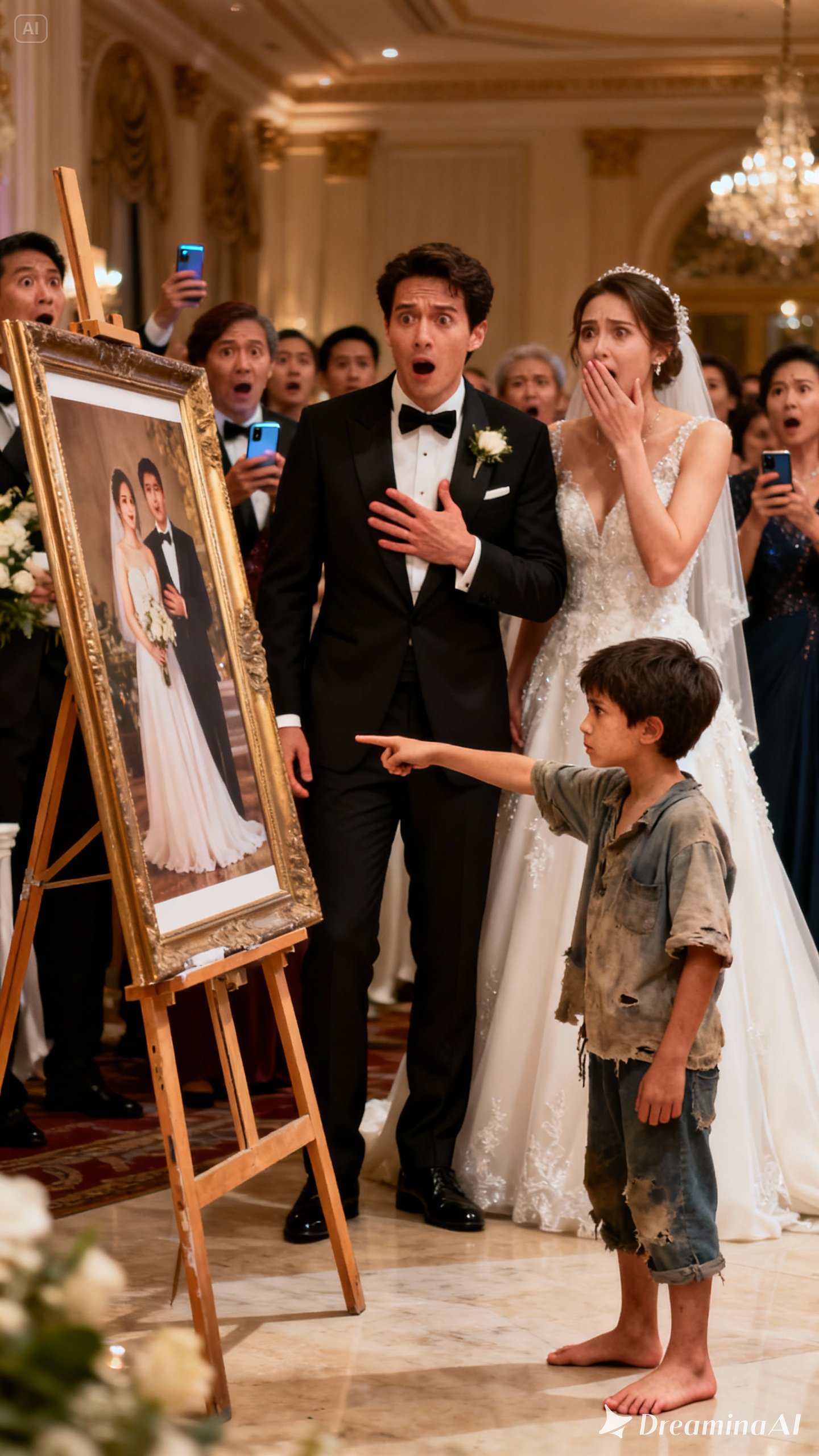 I was leaving my charity gala when a barefoot boy pressed his face to the framed wedding photo and whispered, “That’s my mom.”