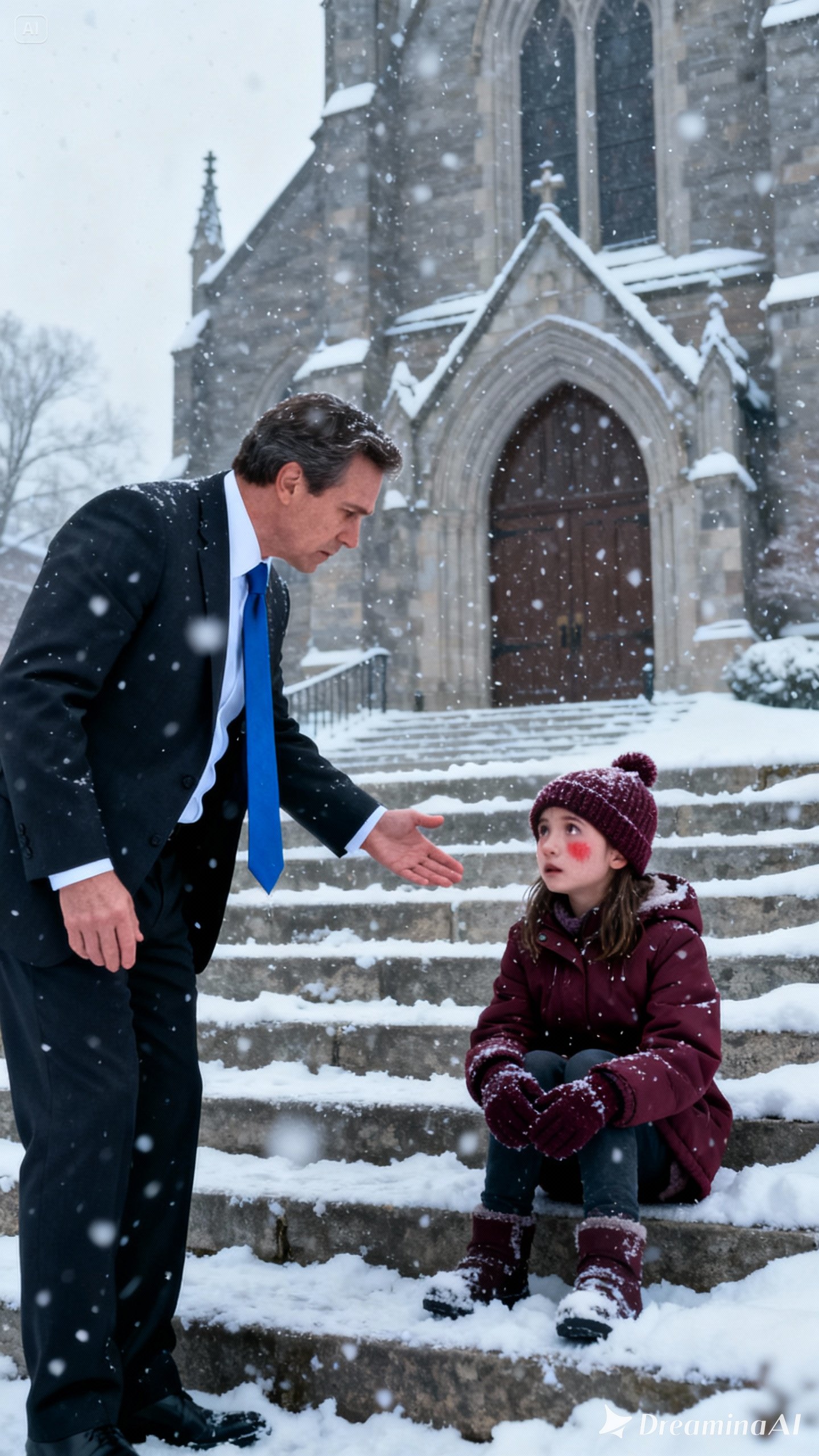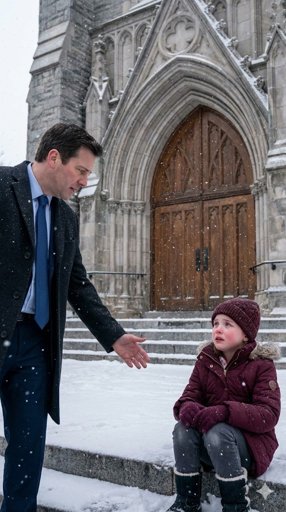 As I drew closer, the scene became a nightmare. A little girl, maybe six or seven years old, was sitting on the curb. She was wearing a coat far too thin for the blizzard, her face exposed, lips frozen blue. She was hugging her knees, rocking back and forth, her eyelashes coated with frost.