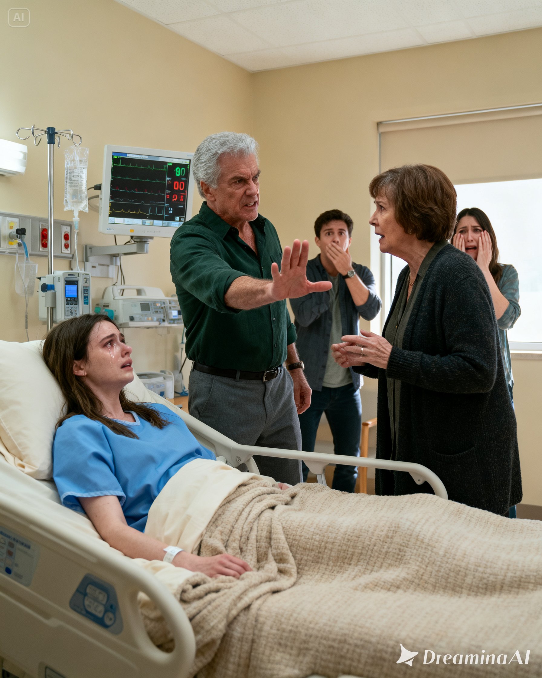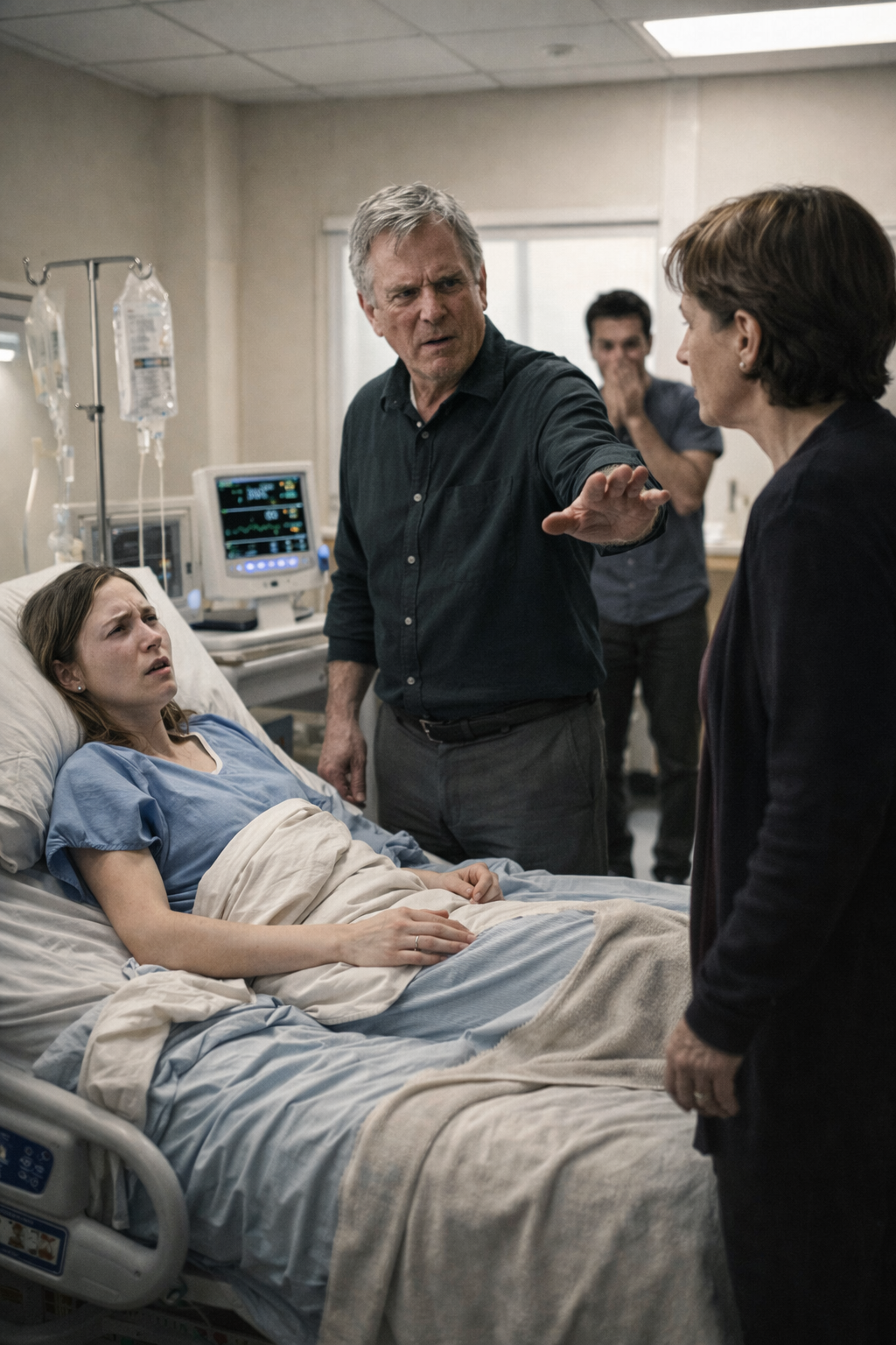 My heart monitor spiked, the electronic beeps speeding up. My mother stood, ready to call a nurse. My father stayed still, jaw tightening.