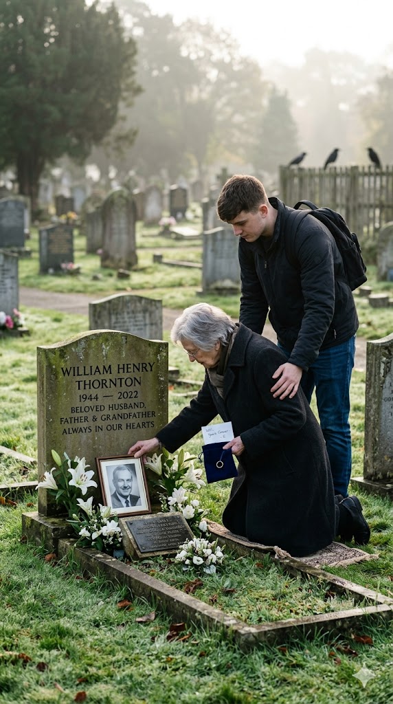 I knelt carefully and set the little velvet pouch beside Walter’s photograph, tucking it between the stems of fresh lilies.