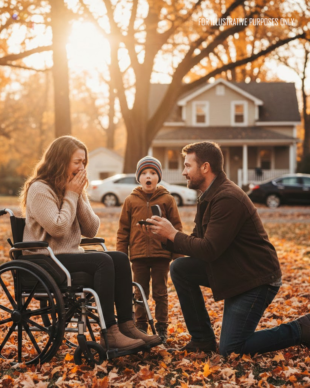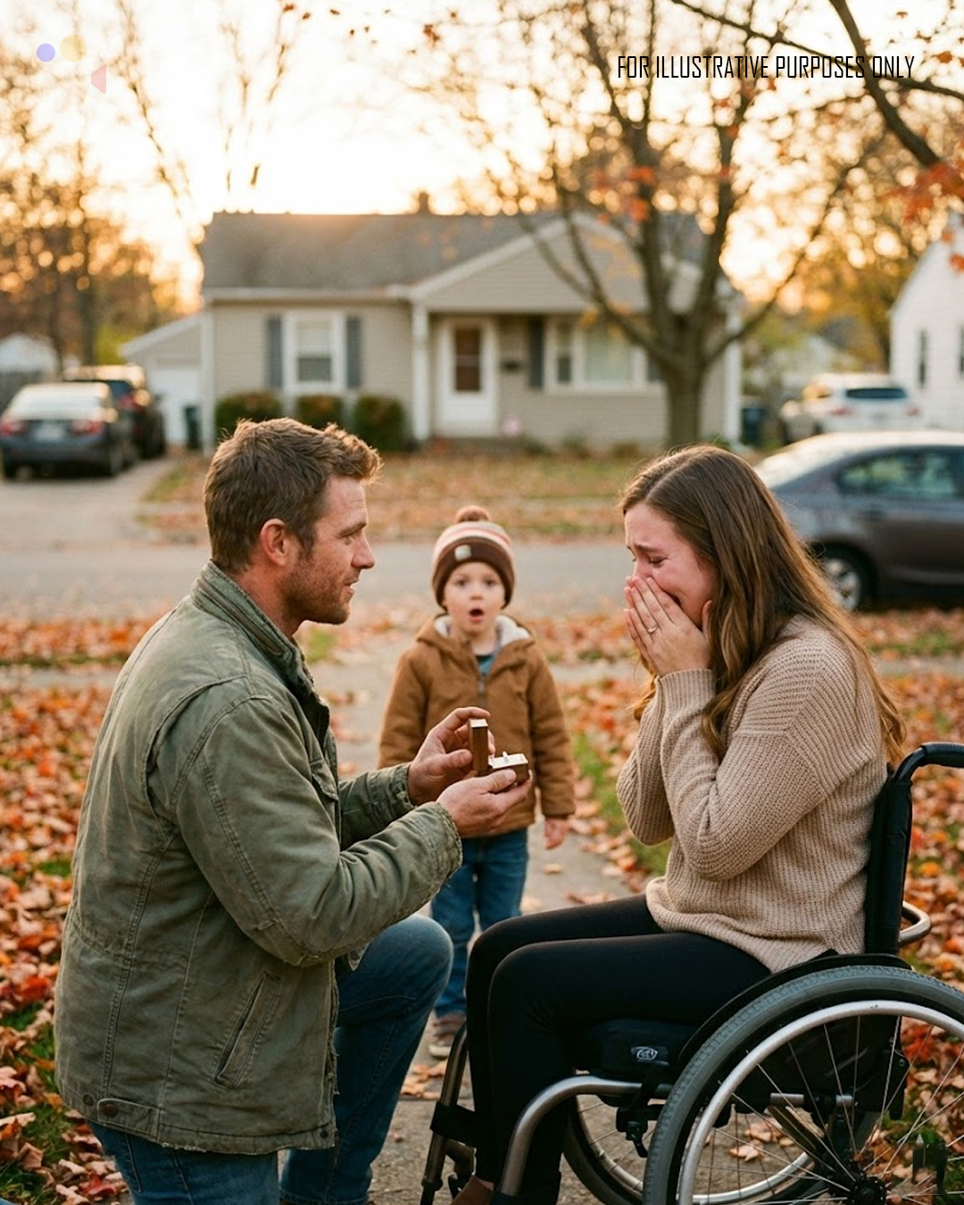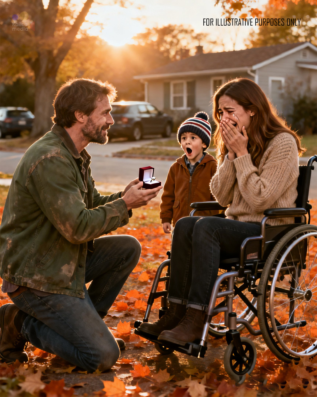 He stepped in front of her and carefully lowered himself onto one knee, wincing but steady.