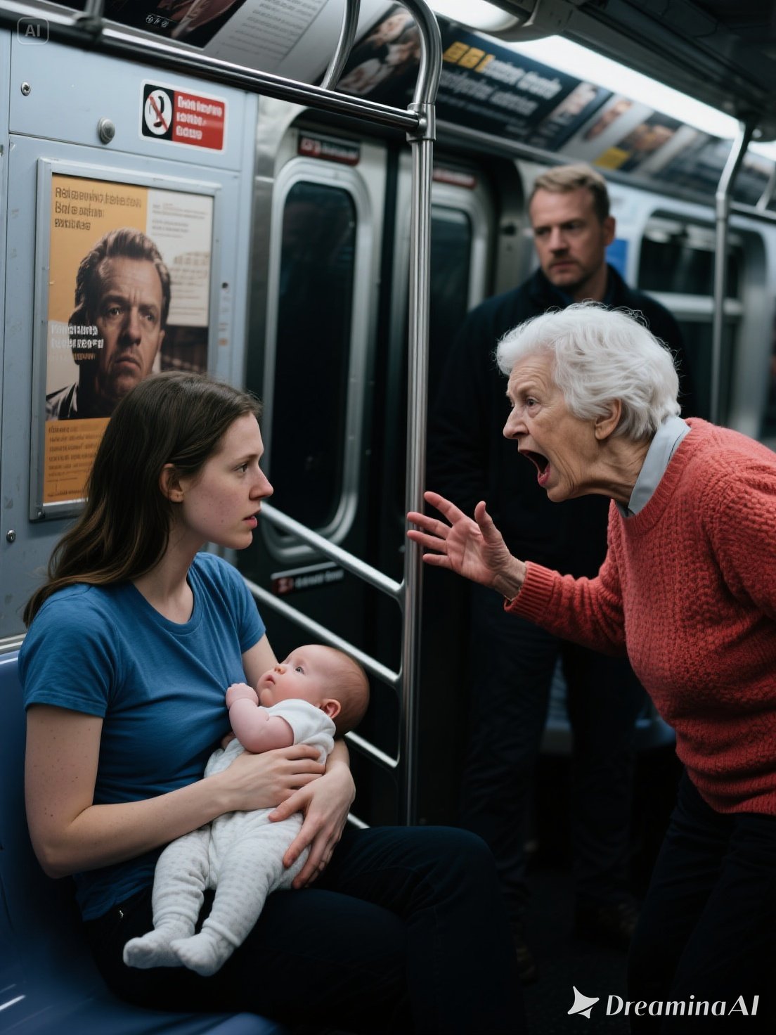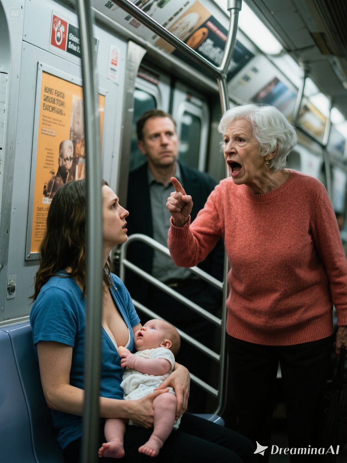 The mother tried to remain composed, but the older woman’s voice grew louder, her gestures wider, drawing the attention of the entire carriage. The atmosphere became tense and uncomfortable.