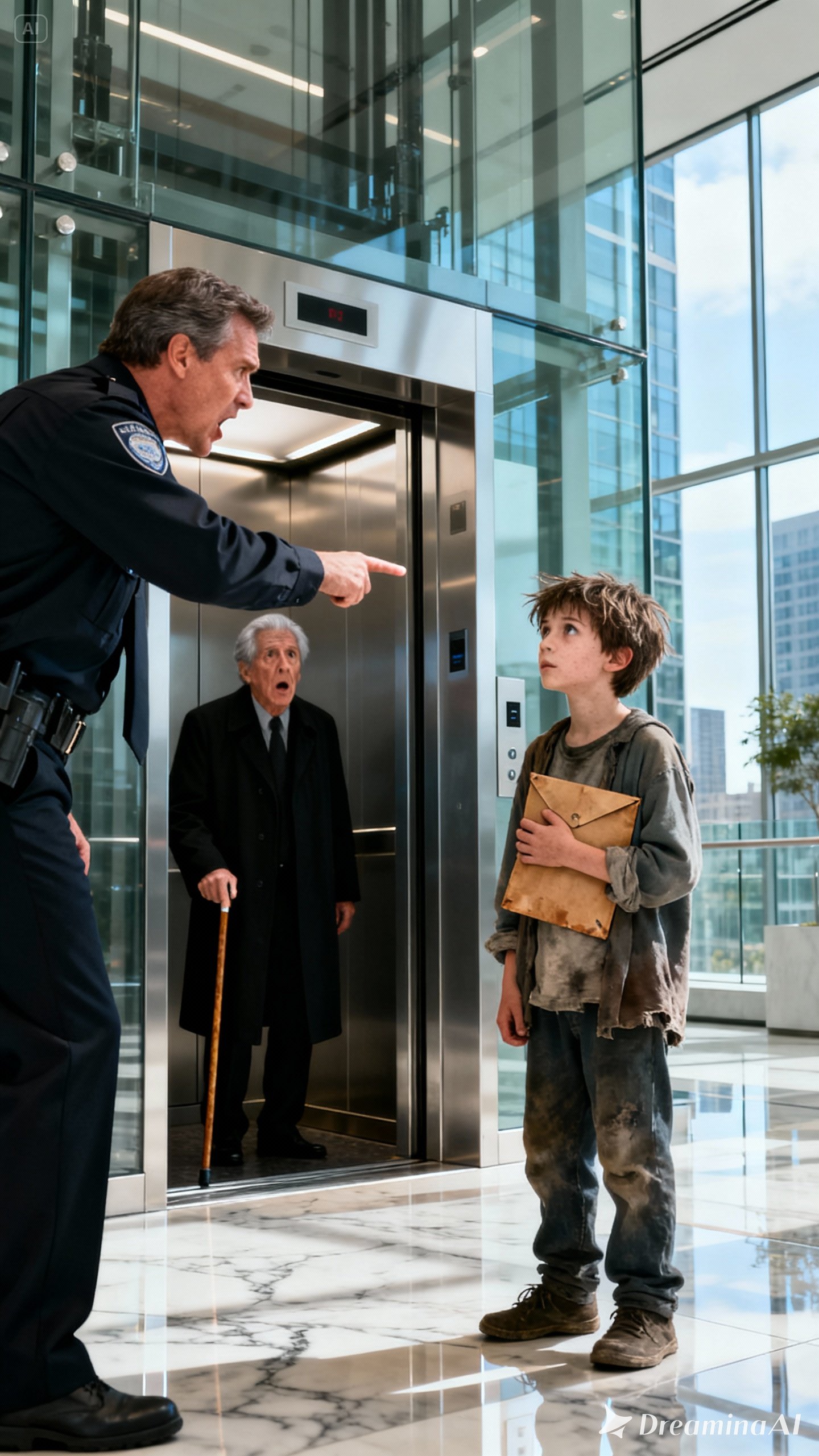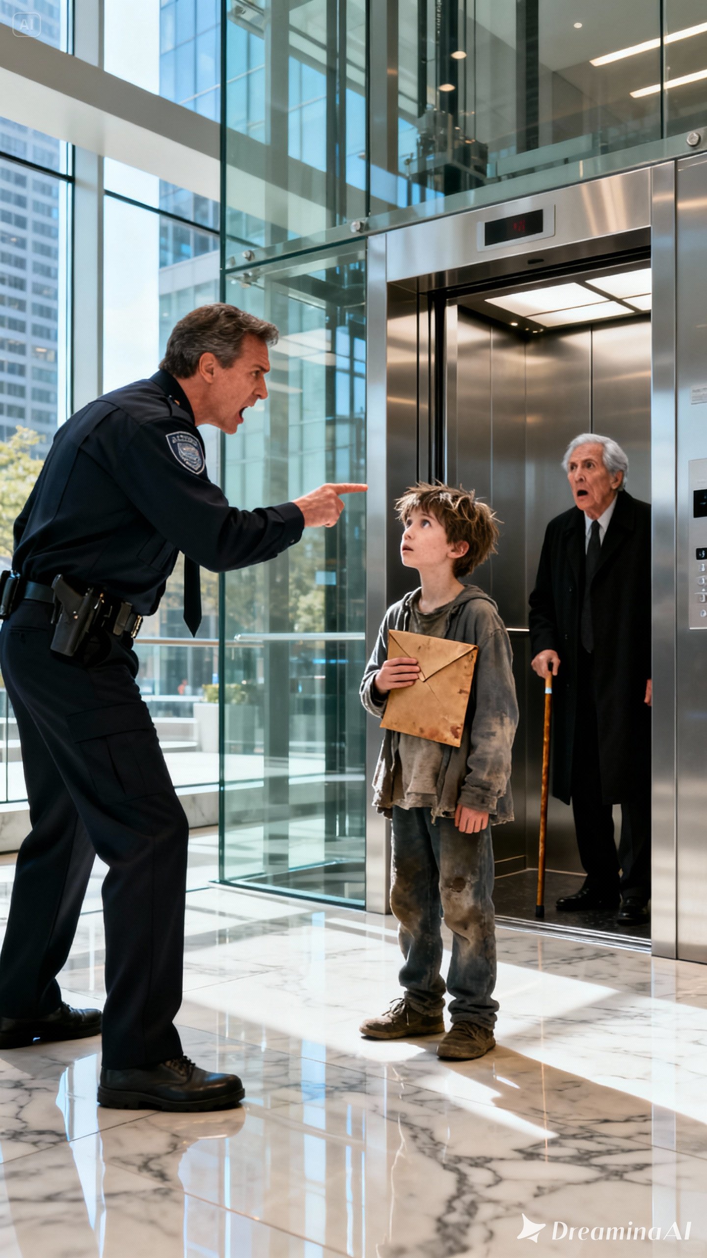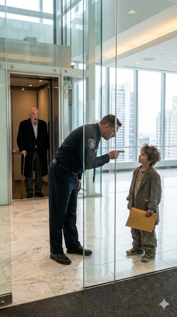 His voice was barely audible in the cold, gleaming lobby, yet there was firmness in it — the kind you don’t expect from a child who sleeps wherever night finds him.