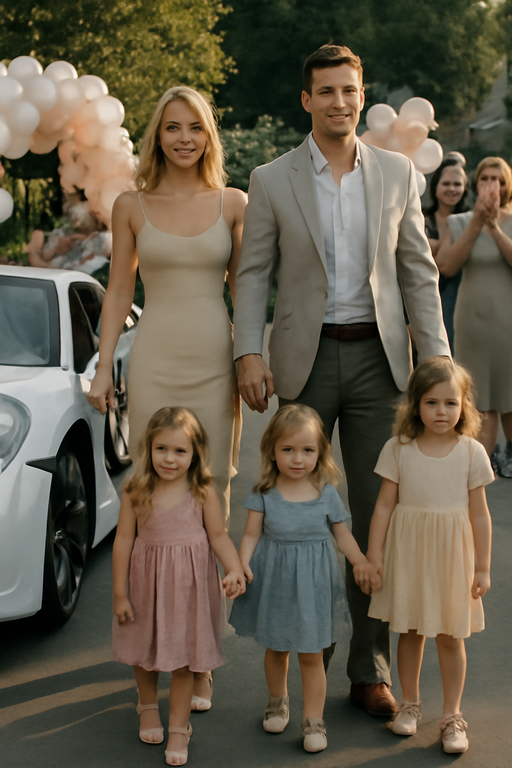 A summer sun hammered the country club’s white stone. I stepped out of a white Lamborghini—Ethan’s playful overkill, not mine—balancing Ruby on my hip while Ava, Noah, and Liam tumbled out behind me in tiny loafers and hair bows.