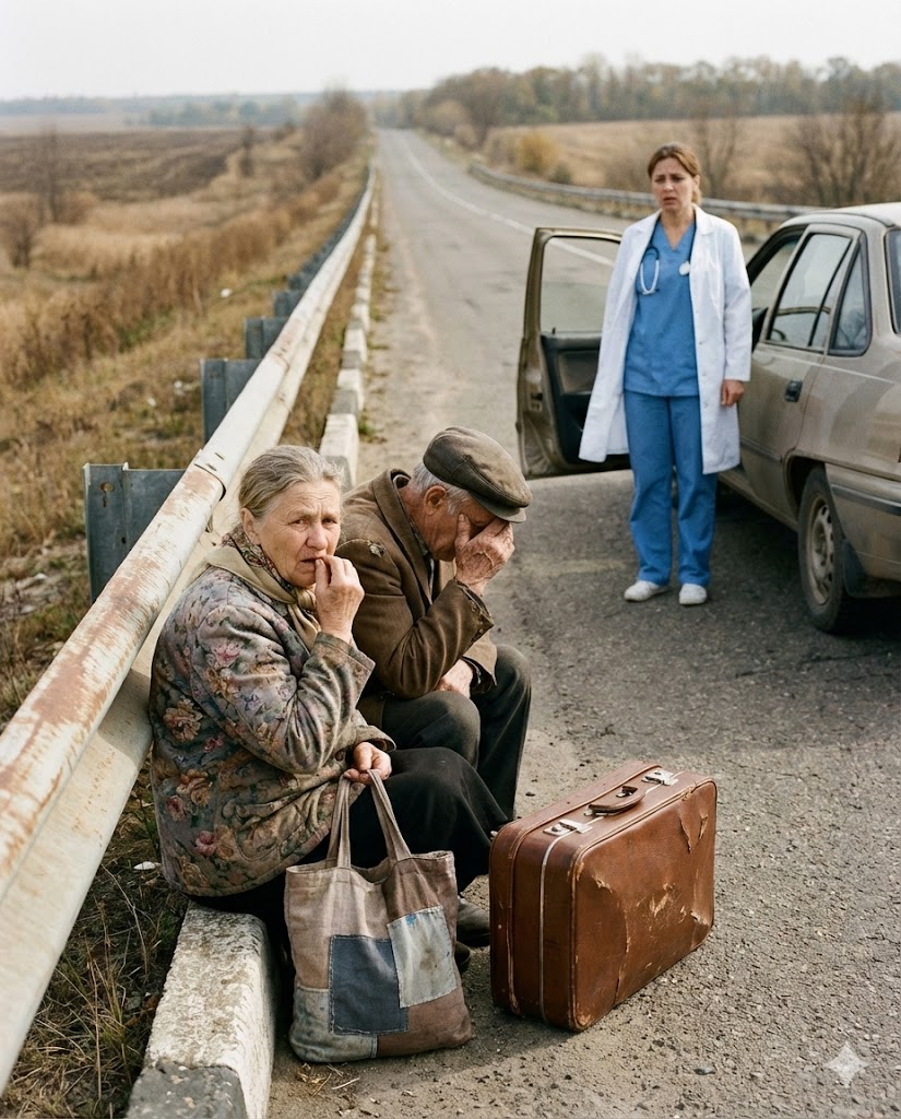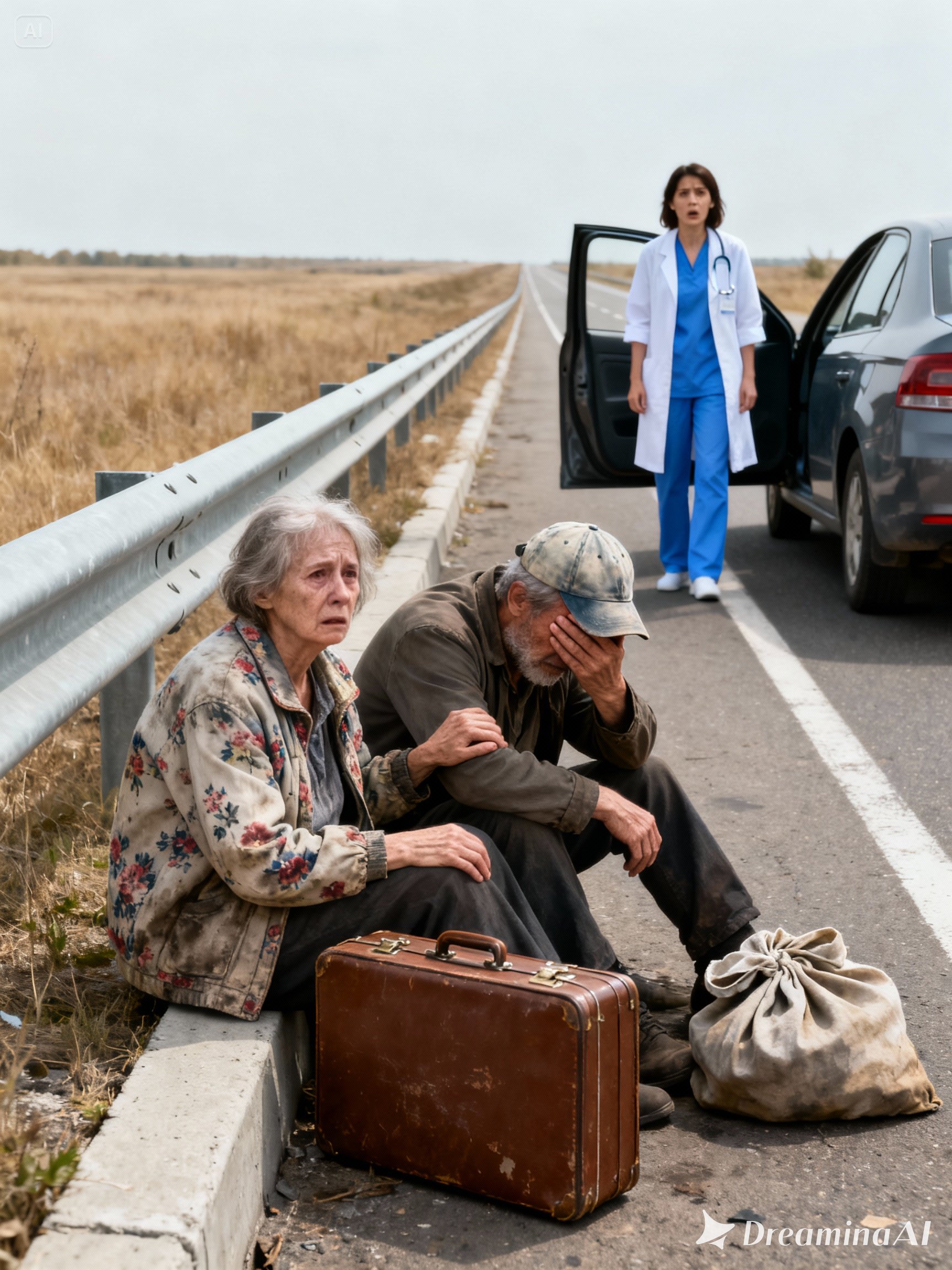 On a humid July afternoon, she was driving back from a medical conference. Her mind drifted between exhaustion and the soft thrum of the radio. The landscape rolled out in wide stretches of farmland and faded barns. Then she saw them: two elderly figures at the side of the road, sitting on suitcases, thin and slumped as if life itself had deflated them. Corinne slowed. Her heart tugged at something she could not immediately name—pity, perhaps. Or maybe recognition. She pulled over.