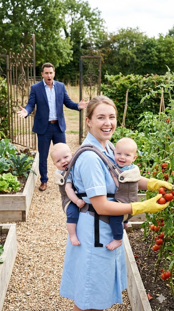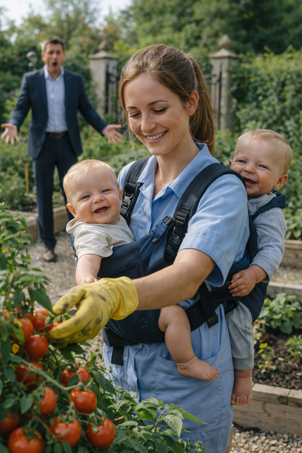 Kneeling in the center of the immaculate garden was Emma Rivera. Not the quiet Emma who served coffee and disappeared. This Emma was smeared with dirt, hair damp with sweat—and she was carrying two bundles strapped to her body.
