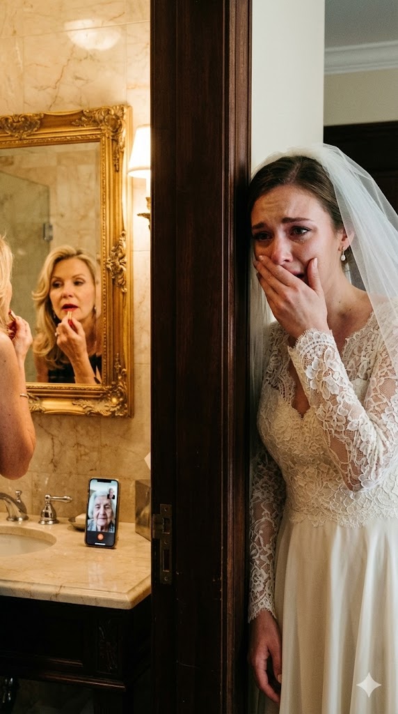I, Emily, stood in the bathroom of the private bridal suite, pressing a chilled towel to my throat. In the gilded mirror, a woman who resembled a fairy-tale bride gazed back. My custom Vera Wang gown billowed like a cloud of silk and lace, and the diamond heirloom tiara glittering on my head could have financed a townhouse.