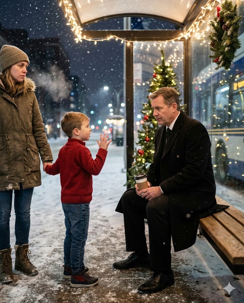Her smile tightened, polite, but tinged with the experience of kindness often carrying hidden strings. “That’s kind. But we’re okay. We’re waiting for the bus.”