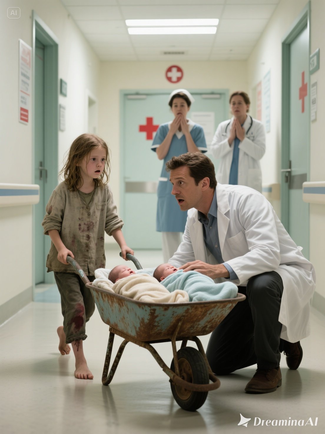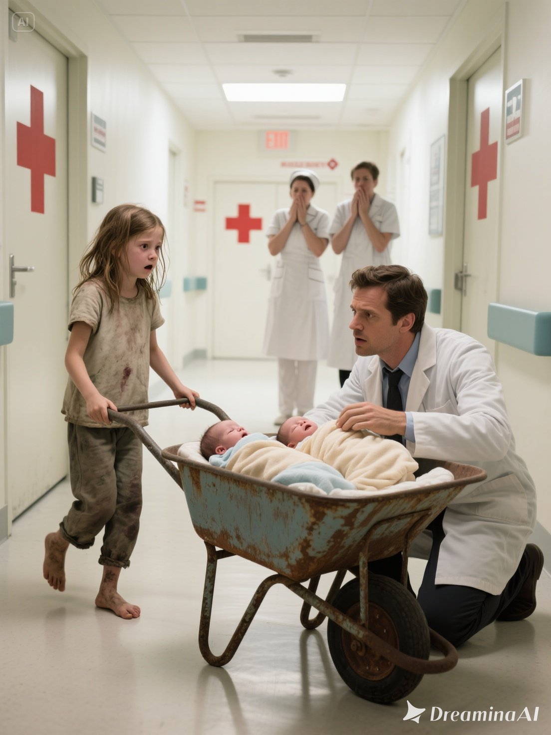 That morning, when the automatic doors swung open, the triage nurse froze. A girl—no more than seven—was pushing a rusted wheelbarrow through the entrance. Inside, wrapped in a thin blanket, were two newborns, their faces pale but breathing.