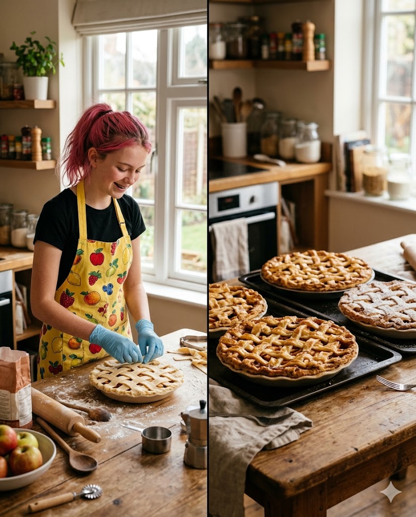 Apples everywhere. Cinnamon hanging thick in the air. Dough on the counter, on the floor, somehow even on the cookie jar. Lila had flour in her hair, on her nose, and—mysteriously—on her forehead.