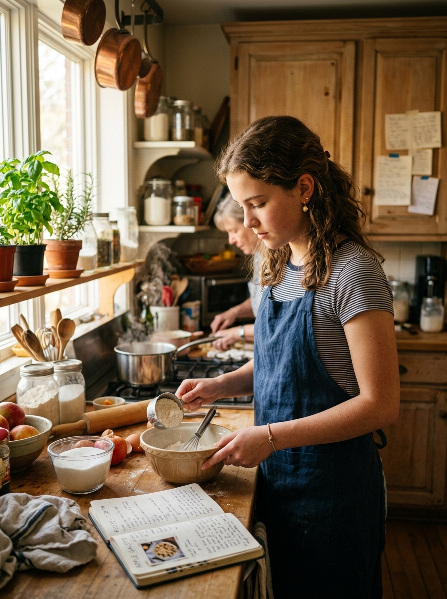She moves through life gently, observing more than she speaks, choosing her moments with care, and when she wants to express something too big for words, she cooks. Not casually, not as a hobby, but with intention, as if every ingredient carries meaning and every dish is a form of communication she can’t say out loud.
