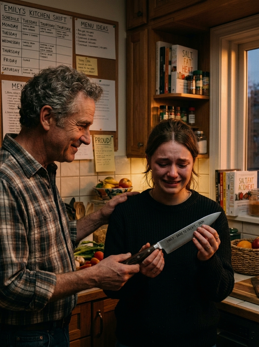 When he apologized to Emily, he didn’t rush it, didn’t soften it with excuses—and that was what made it real. He handed her a small box, and inside was a chef’s knife, simple but carefully chosen, her initials engraved on the handle.