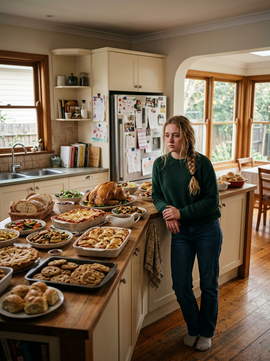 The food was arranged carefully, each dish placed with intention, as if even the layout was part of what she was trying to say. The house smelled like celebration, like something warm and generous waiting to be shared.