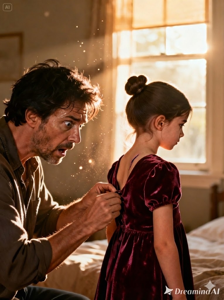 Emma stood near the window, not in her pale blue recital dress, but in jeans and a faded pink t-shirt. The dress was still hanging untouched on the closet door. Her violin case sat closed on the bed.