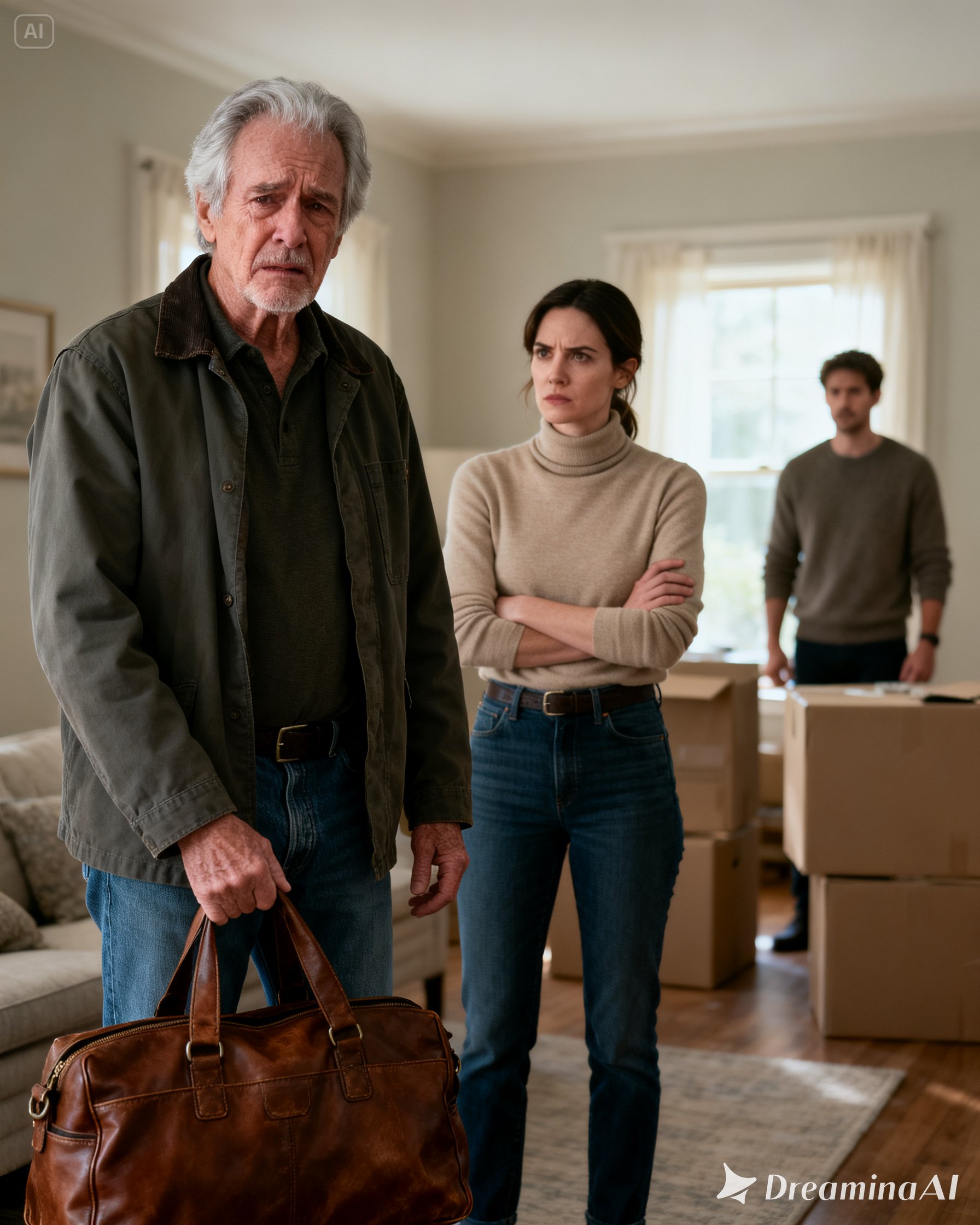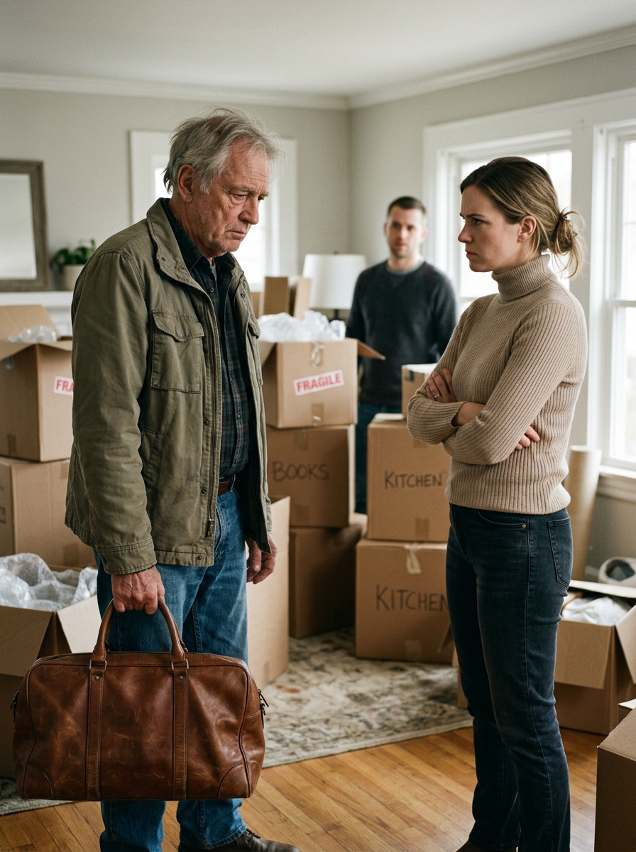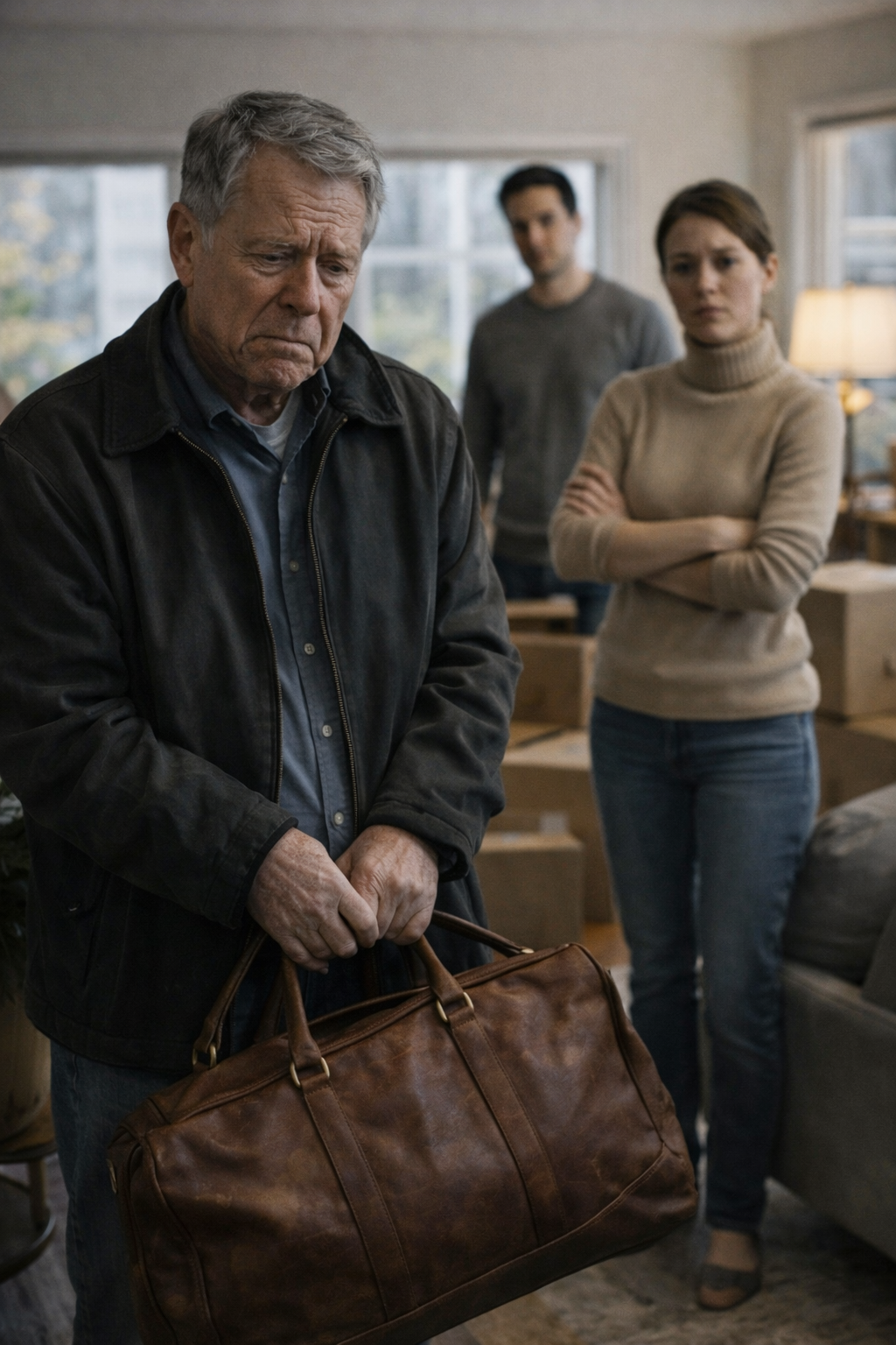Reed asks if you need water, a medic, or a few minutes alone. Strangely, you want none of that. What you want is impossible: to go back to six-thirty that morning, to your armchair, your faded mug, the version of your daughter who once ran into your arms after kindergarten with glue on her hands and a paper turkey in her backpack. Instead, you sit straighter. Today has changed species. You are no longer a discarded old man with one suitcase—you are a discarded old man whose daughter may have known you were standing atop a buried life raft.