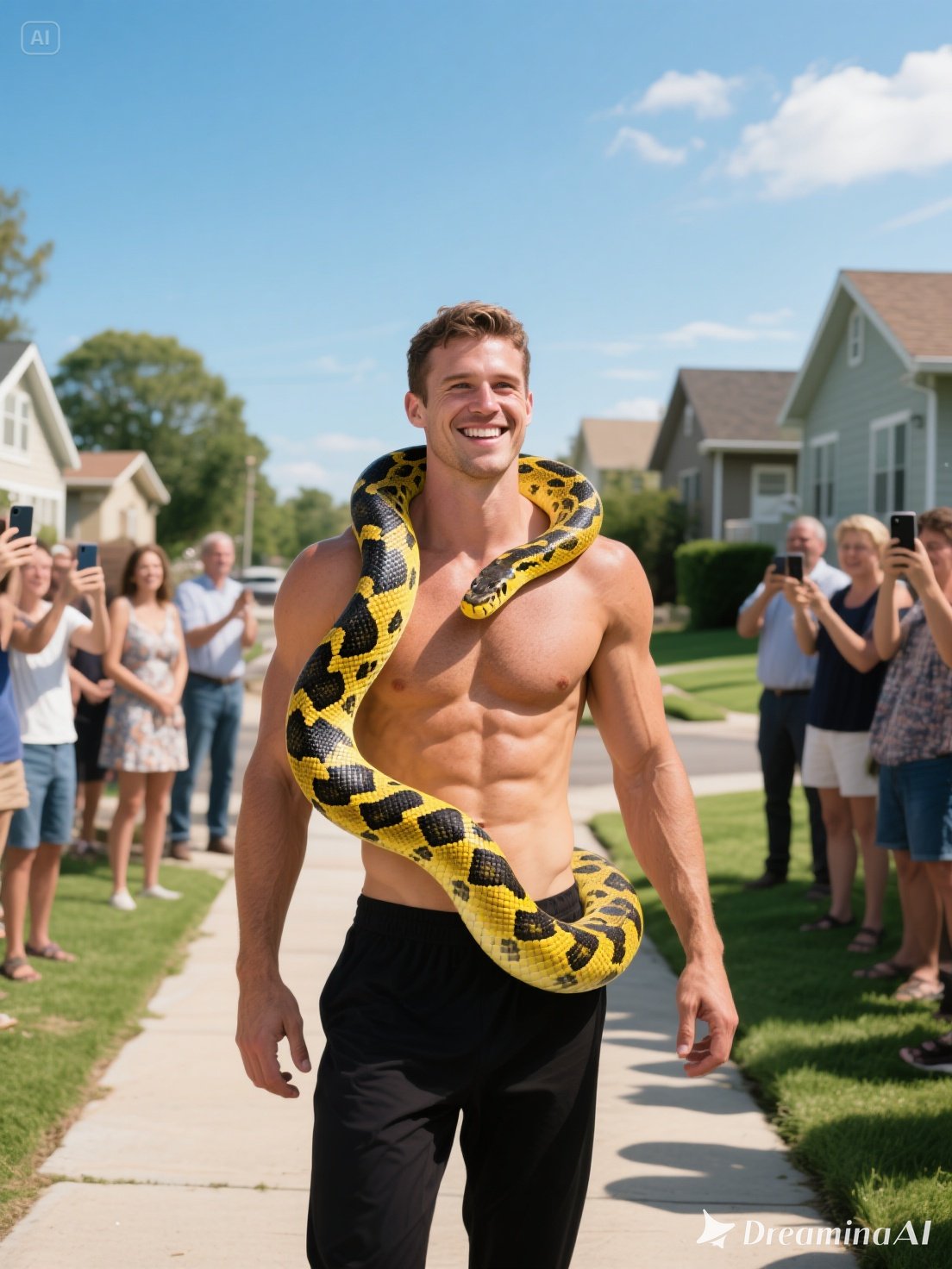 Neighbors gathered on their lawns, recording as Liam performed his “hero” act, pretending to bravely capture the snake he’d clearly released himself.