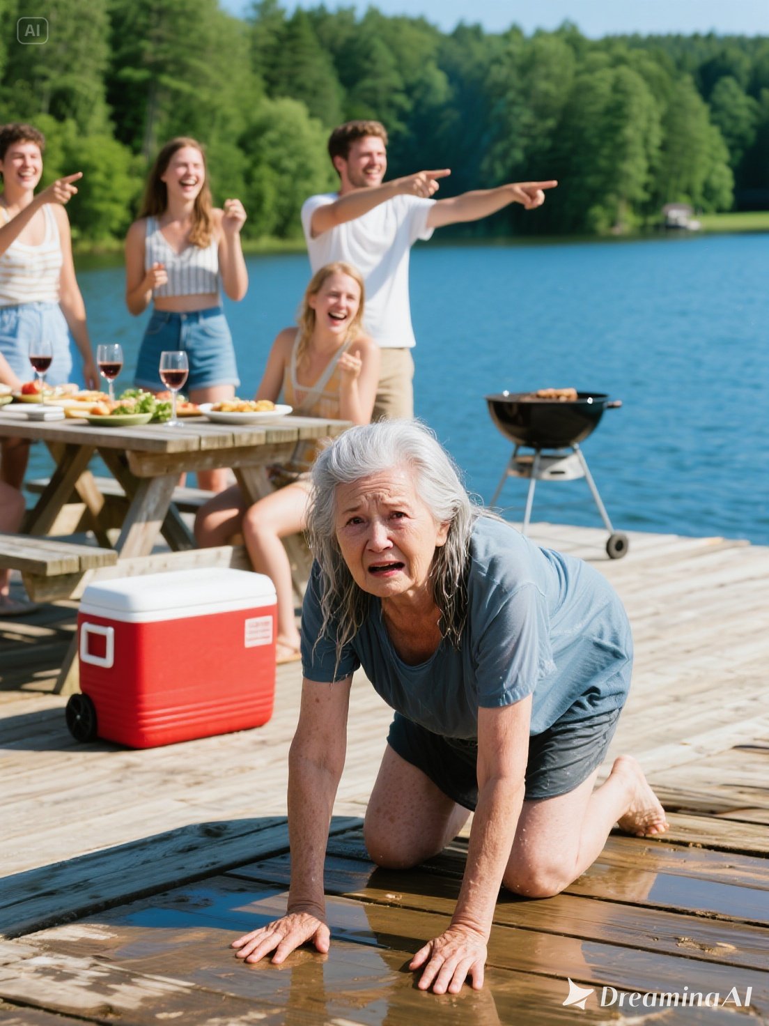 “Let’s see if you can still swim, Grandma,” my nineteen-year-old grandson Kyle said from behind me on the dock. Two hands. One hard shove.