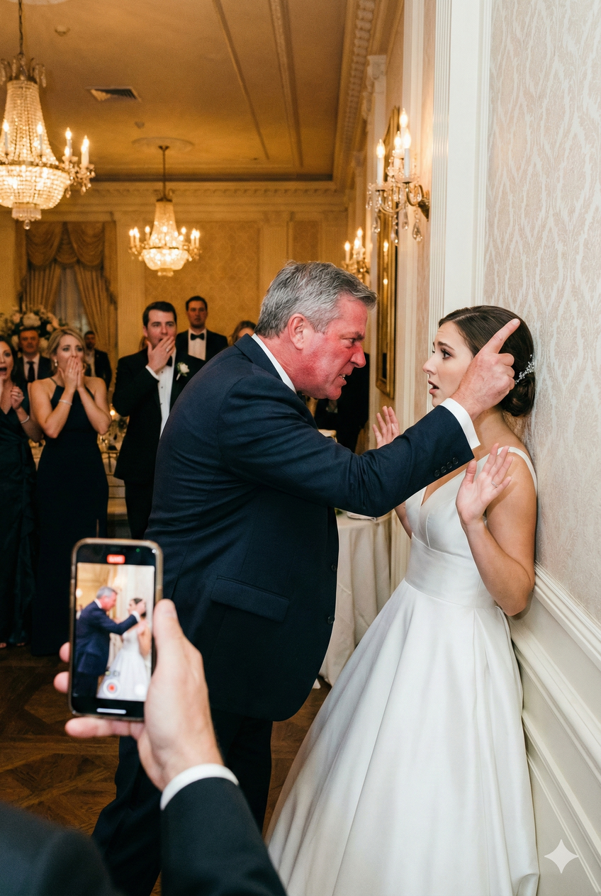I stopped a few feet from the bridal table, directly in front of my father. His smile was fixed, but his eyes were cold, swimming with bourbon.