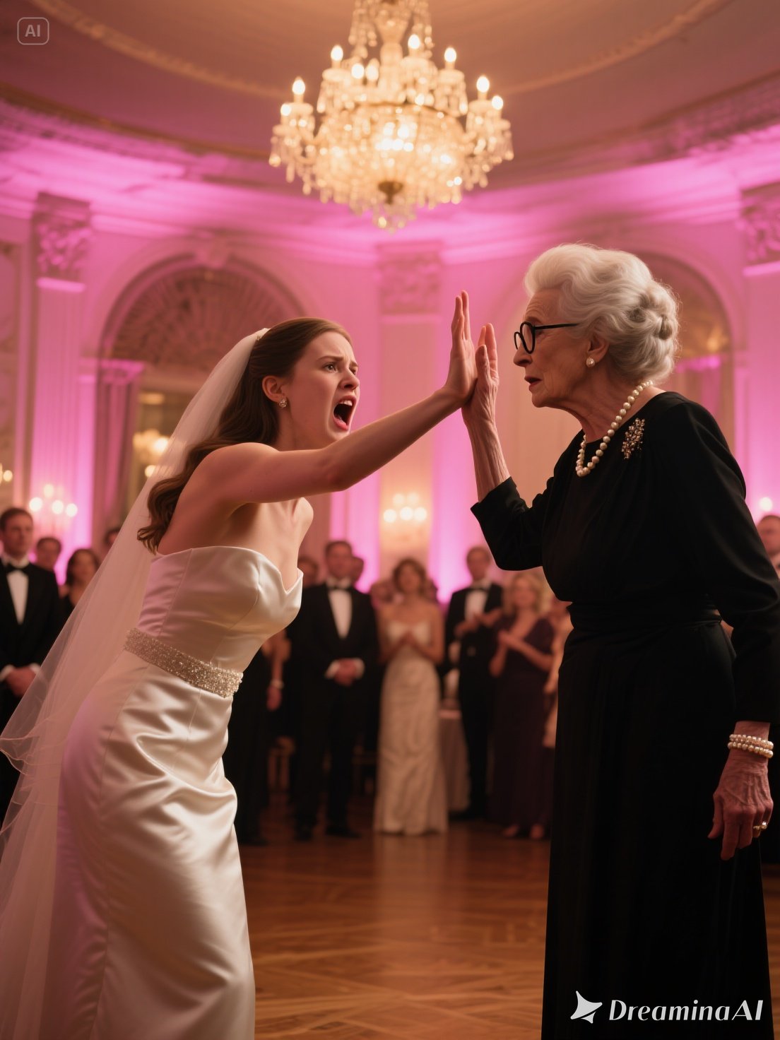Juliet, my new daughter-in-law, stood before me, fury twisting her perfect face — her immaculate wedding gown a cruel contrast.