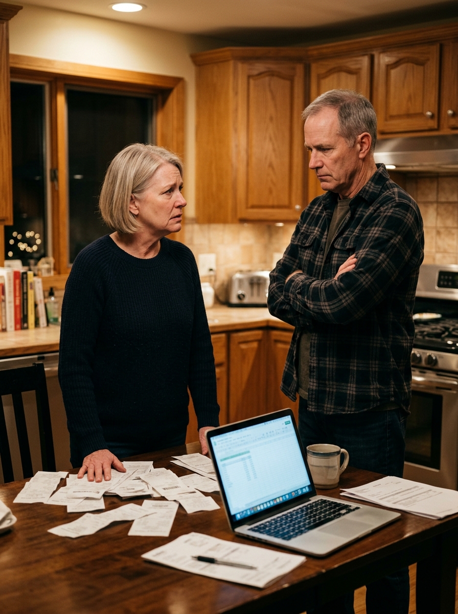 When Troy came home the next evening, I was waiting at the kitchen table with the receipts. He stopped in the doorway, keys still in hand.