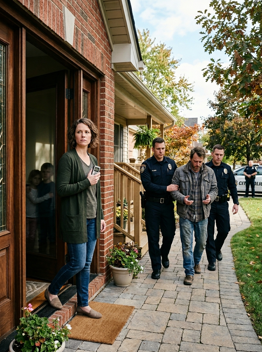 He stood. He didn’t argue. He didn’t make a scene. He simply pushed back the chair and walked to the front door, and when I opened it, two officers were standing on the porch. Aaron raised his hands — slowly, calmly — and went with them.