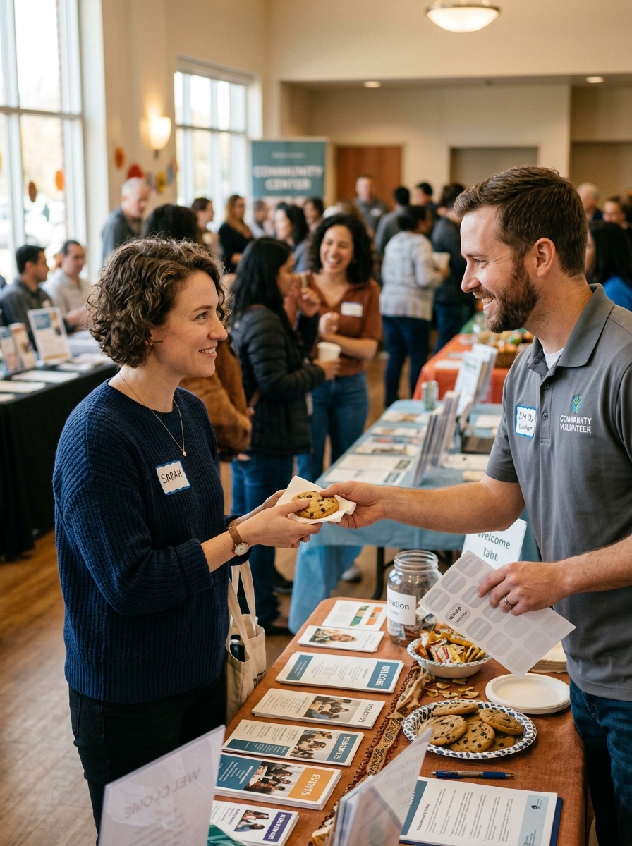 “You look like someone who deserves the last cookie,” Caleb said, handing me a name sticker and pointing toward the snack table.