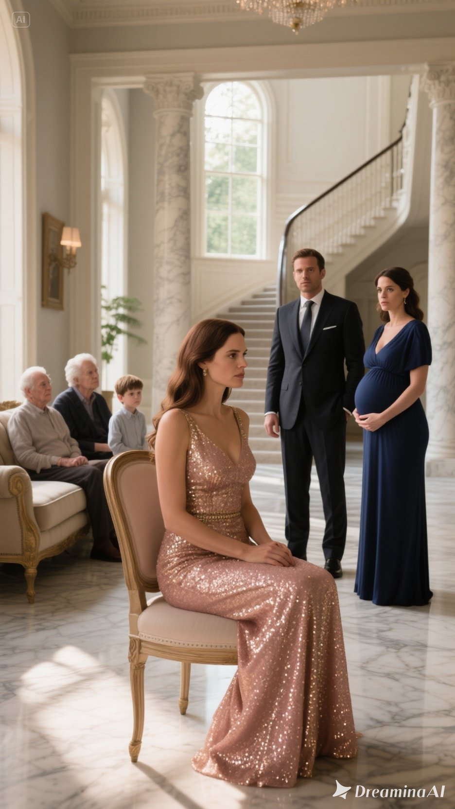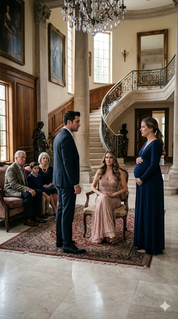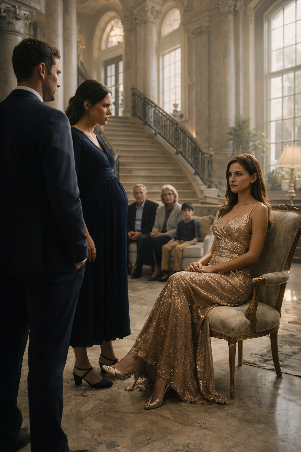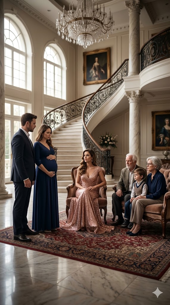 She rested one hand across her stomach in a gesture that felt almost ceremonial, as though the unborn child she claimed to carry granted her sudden authority inside a house that had never been hers.