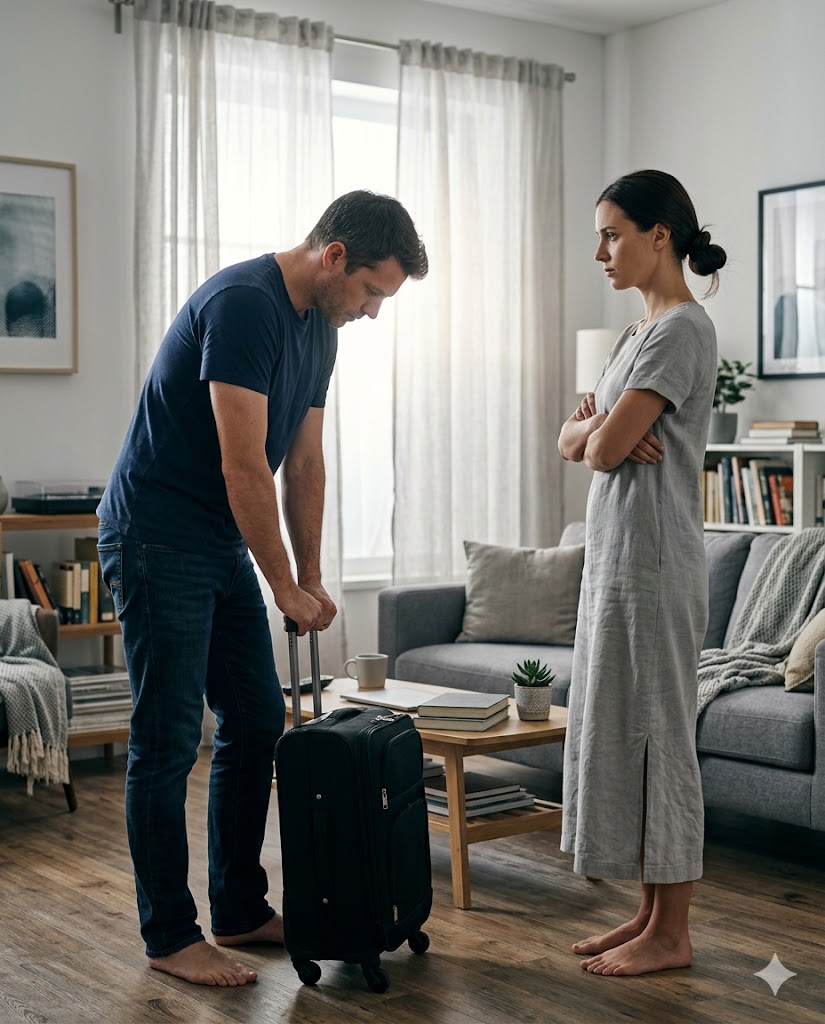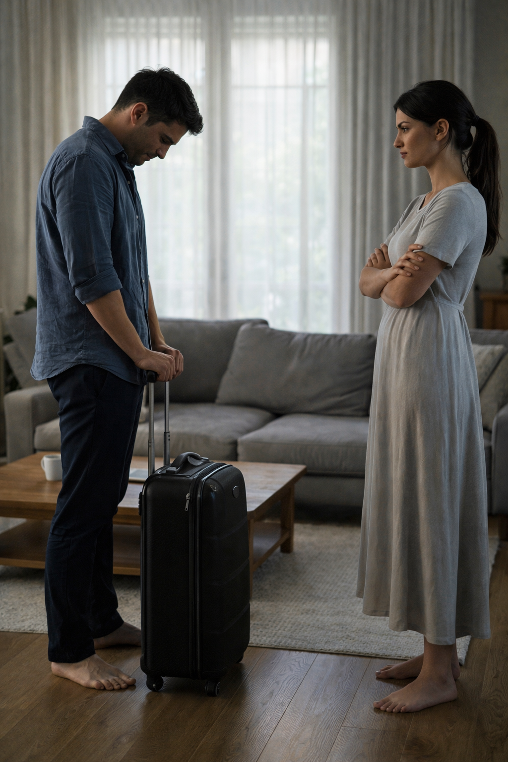 “I’m not repeating myself. Tonight: guest room. No scene in front of our daughter. Tomorrow: tests, lawyer, somewhere to live.”
